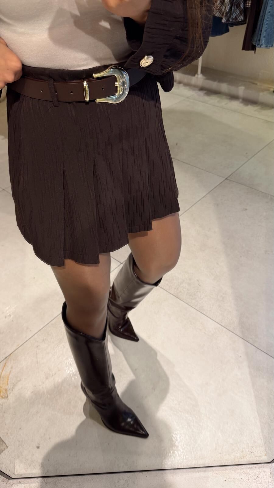 Kemerli Kahve Şort Etek