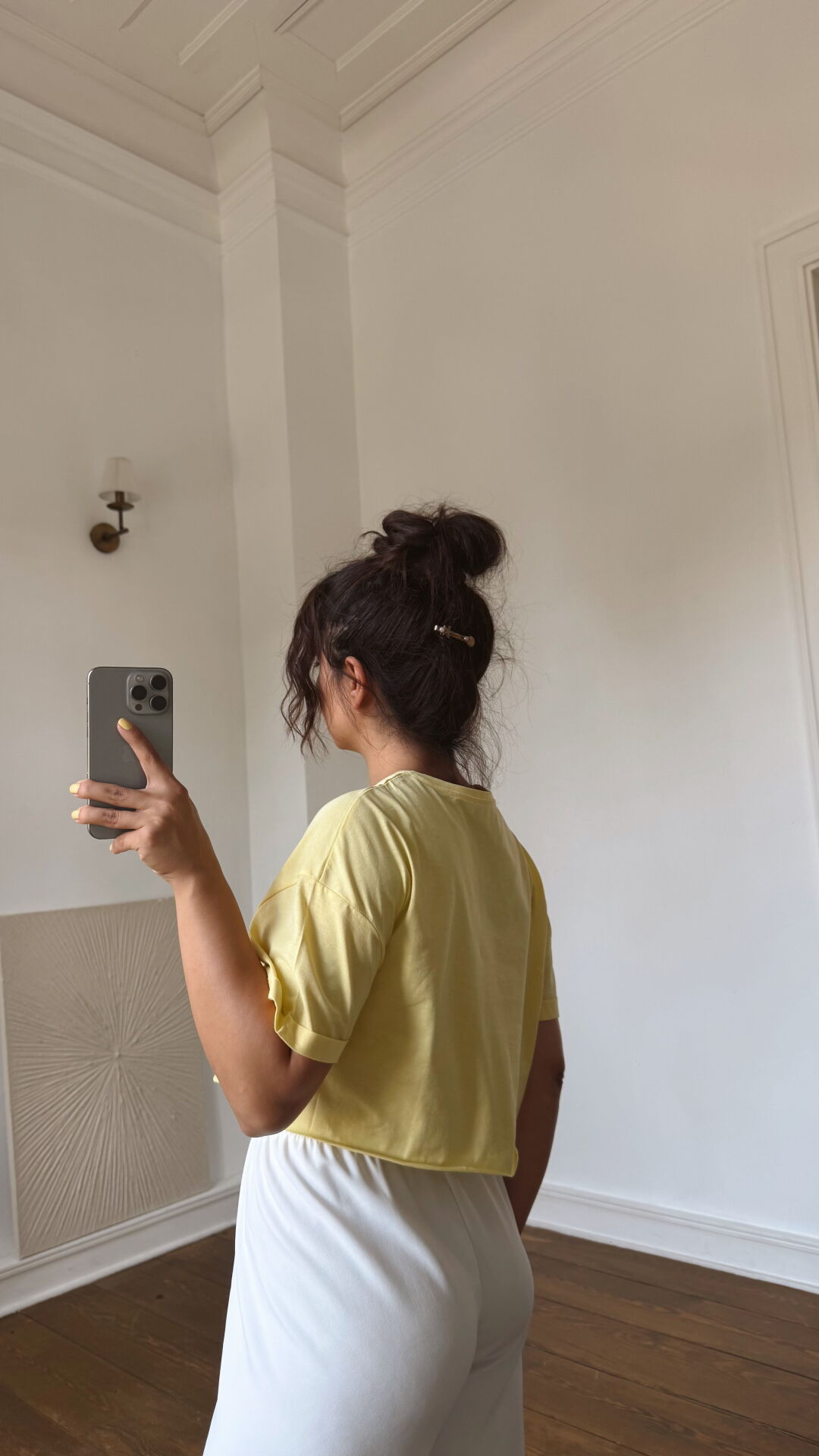 Kesik Uç Crop Tişört-Sarı