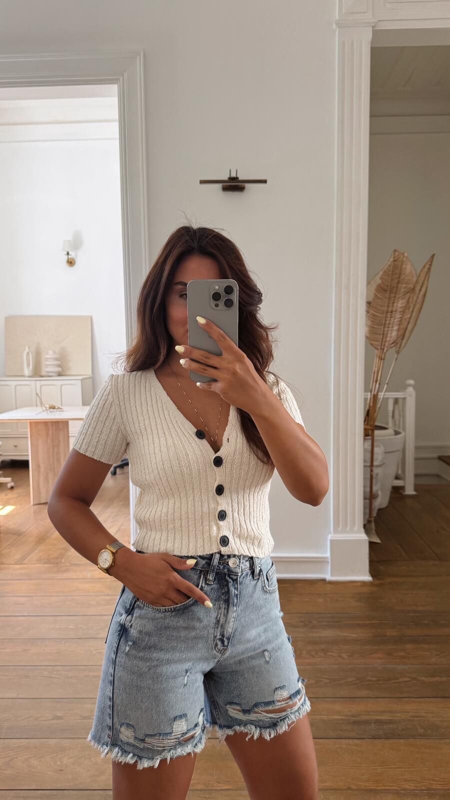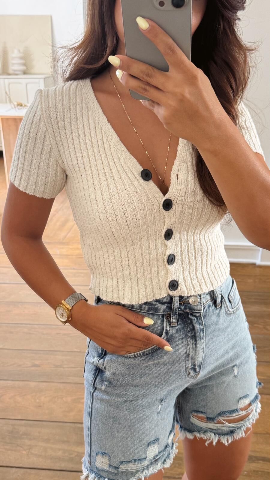 Kısa Kol Triko Hırka Ekru