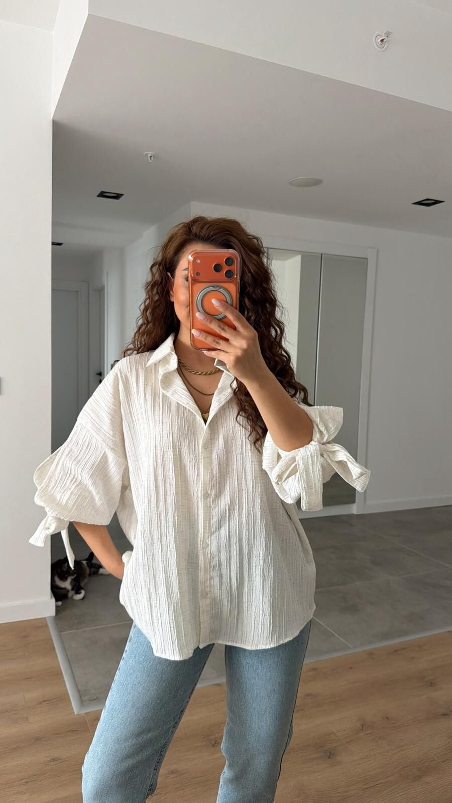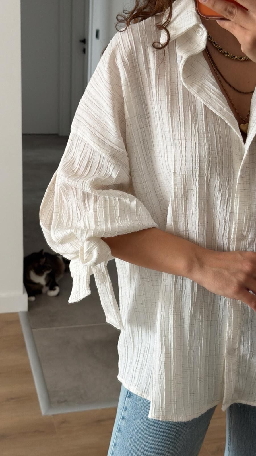 Krem Kol Bağlamalı Gömlek