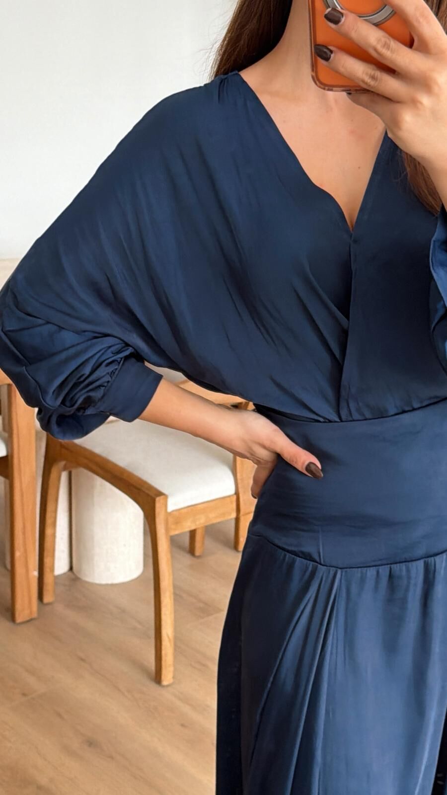 Kruvaze Saten Bluz Laci
