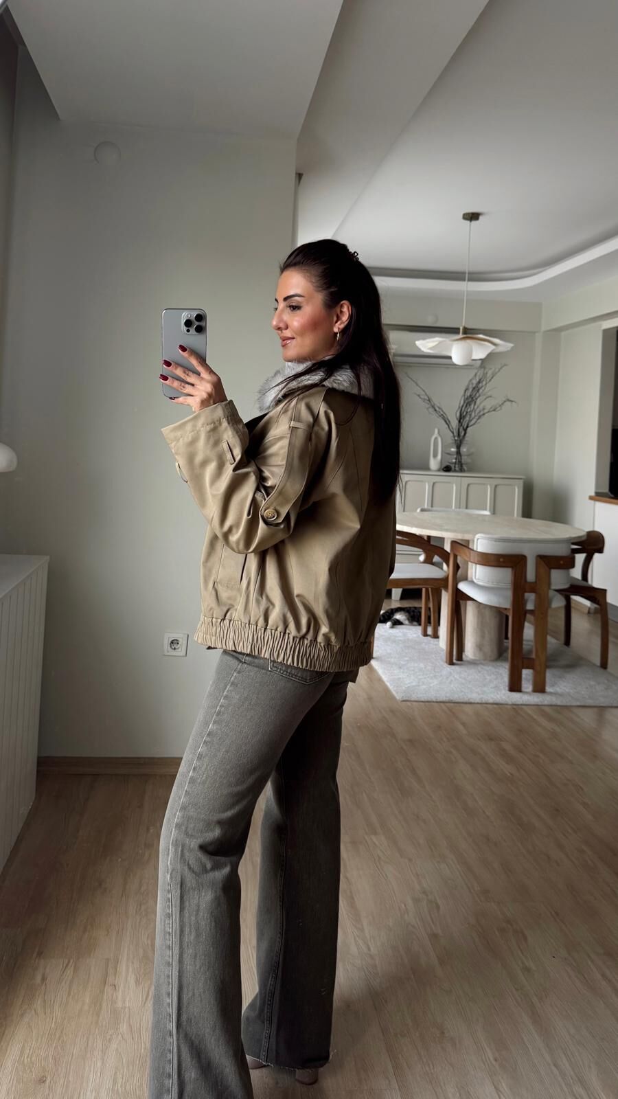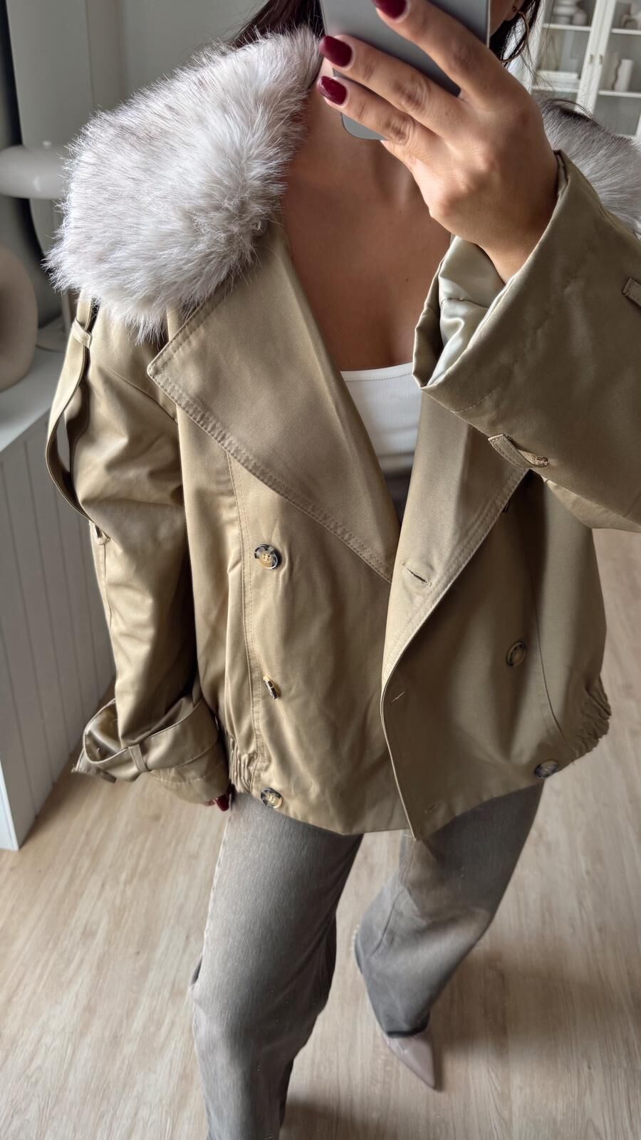 Kürk Yakalı Haki Ceket