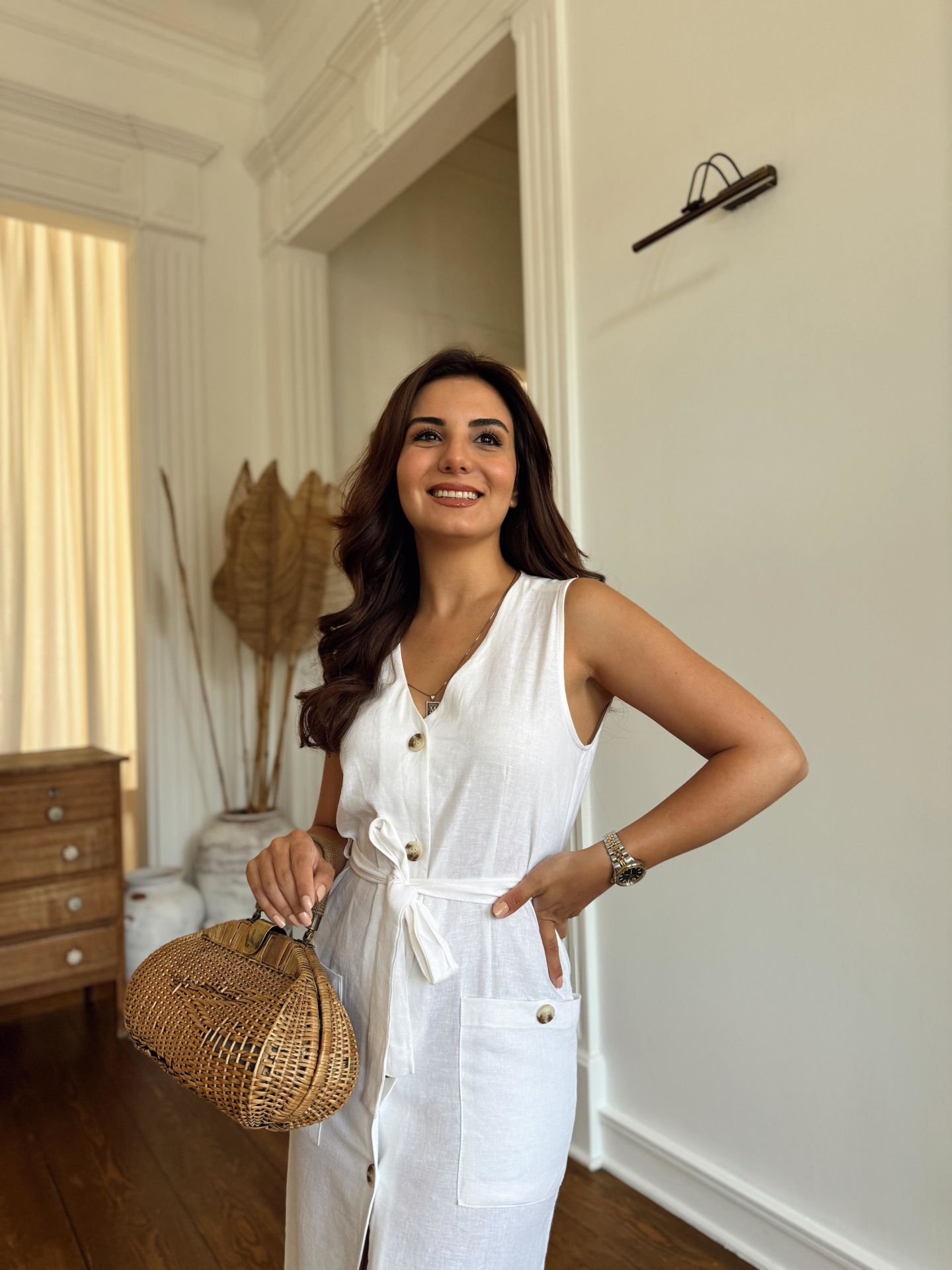 Kuşaklı Cepli Keten Elbise