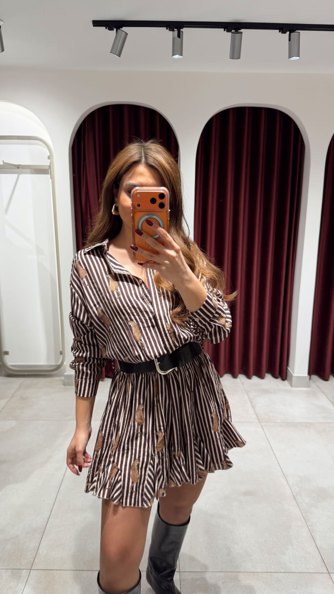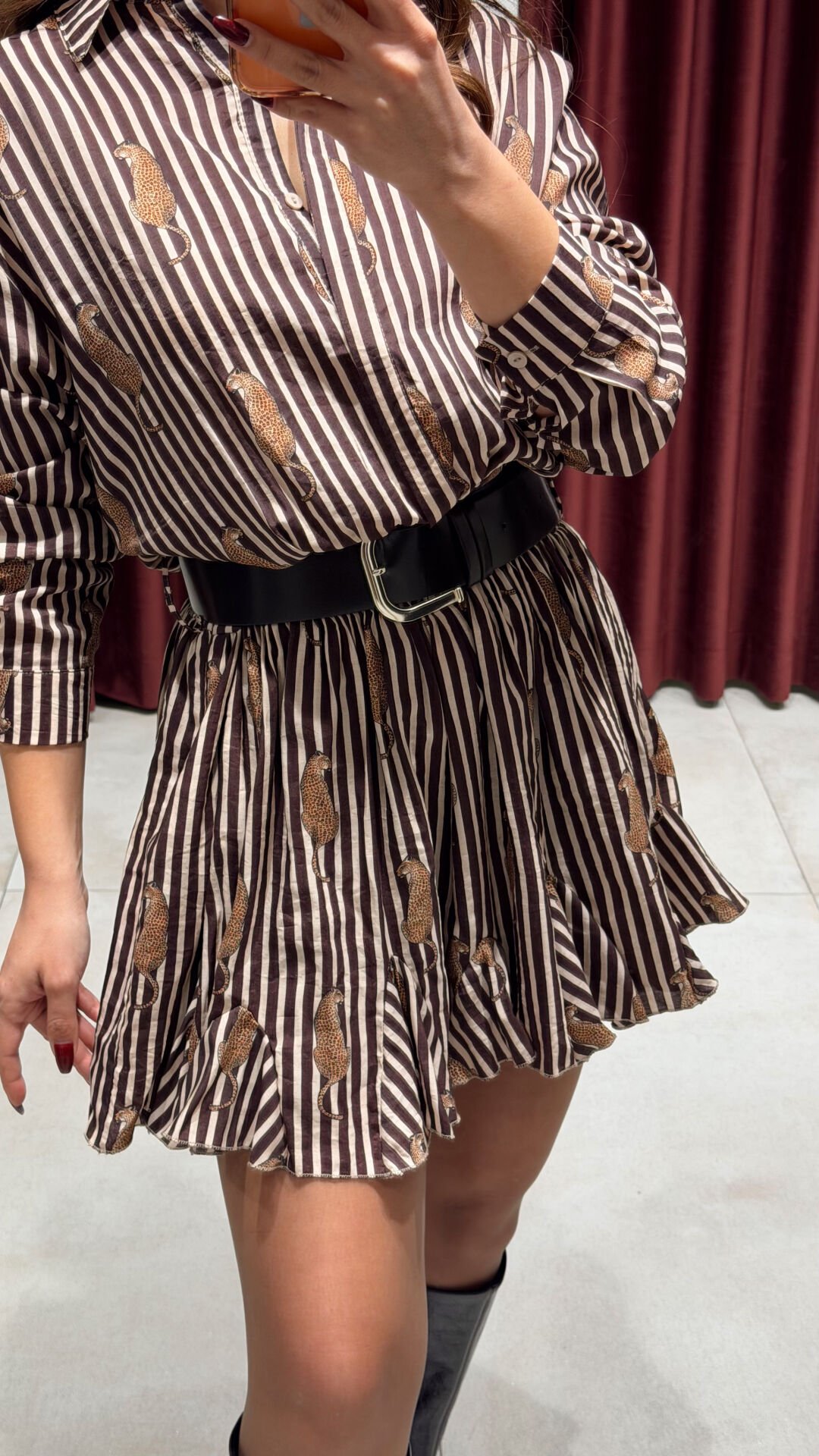 Leopar Desen Kemerli Elbise