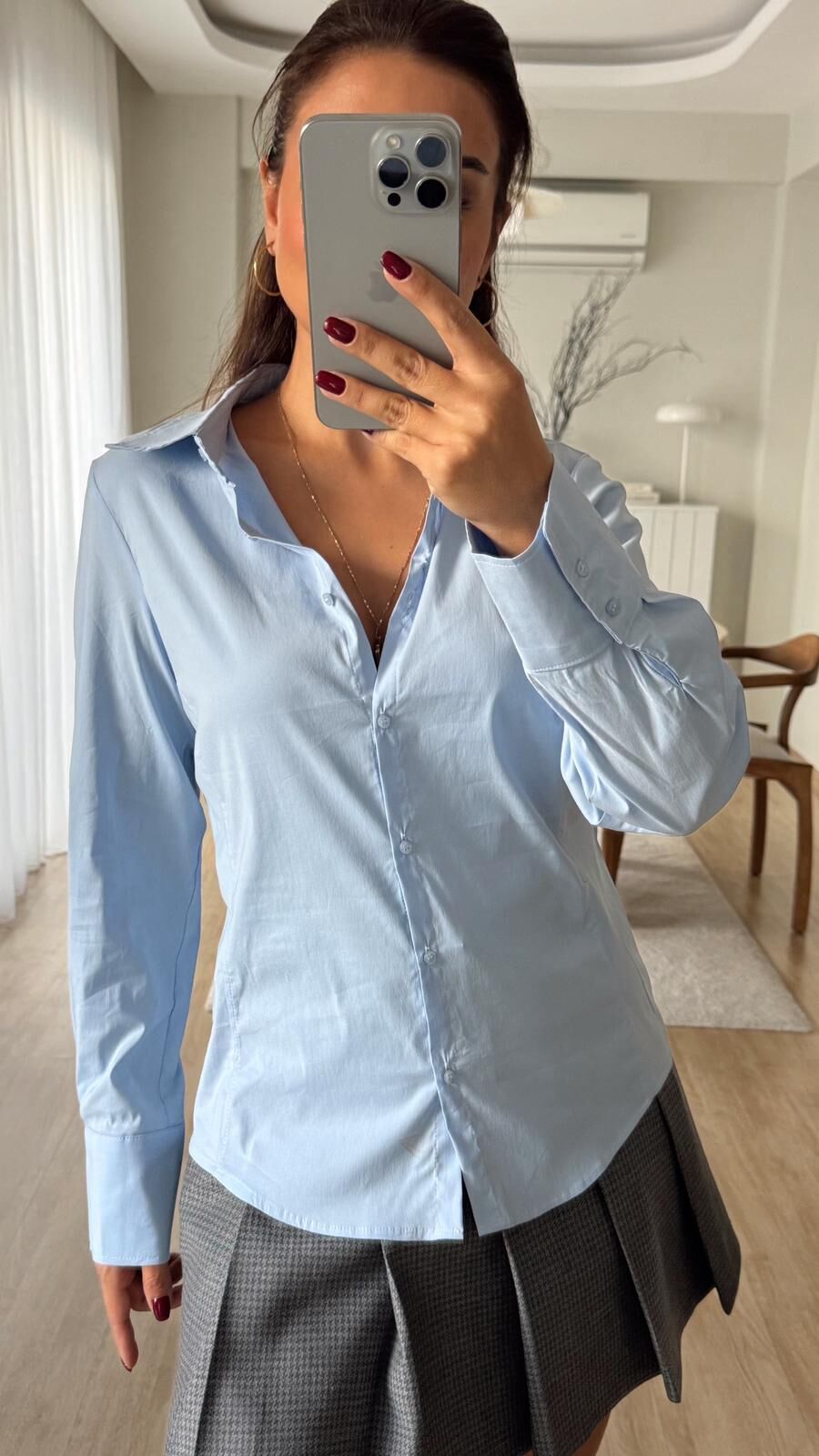Mavi Strecth Gömlek