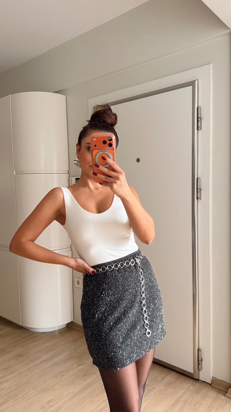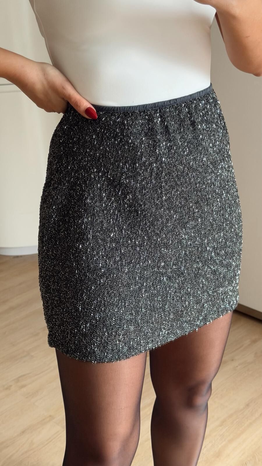 Mini Etek Taş İşlemeli Gri