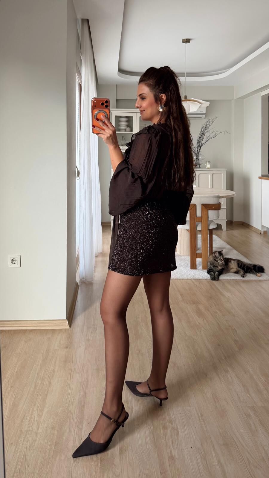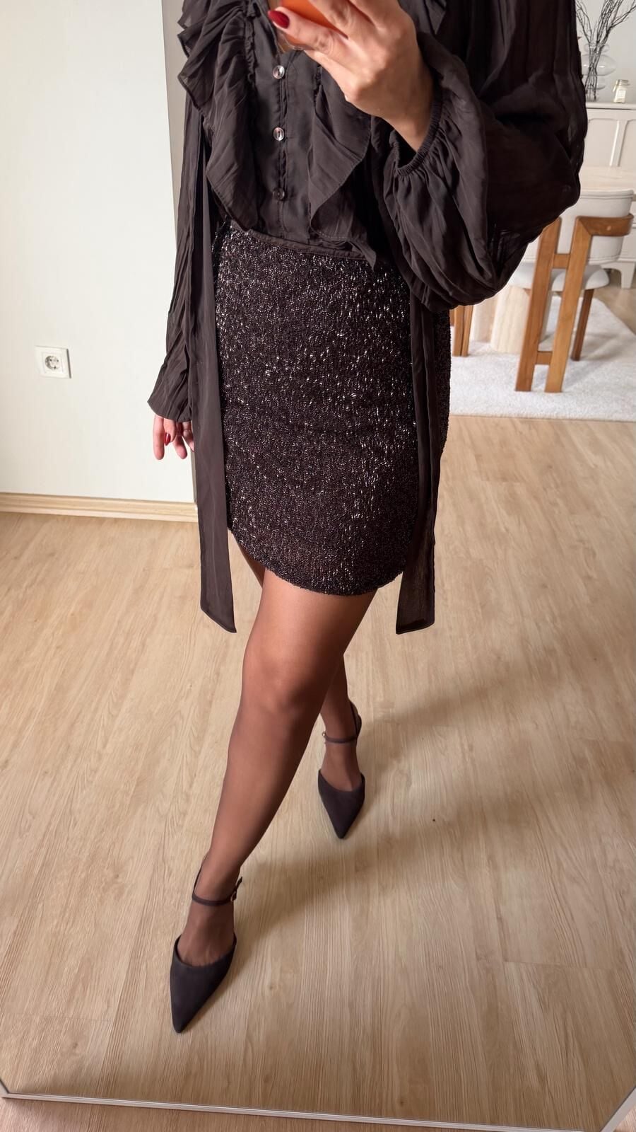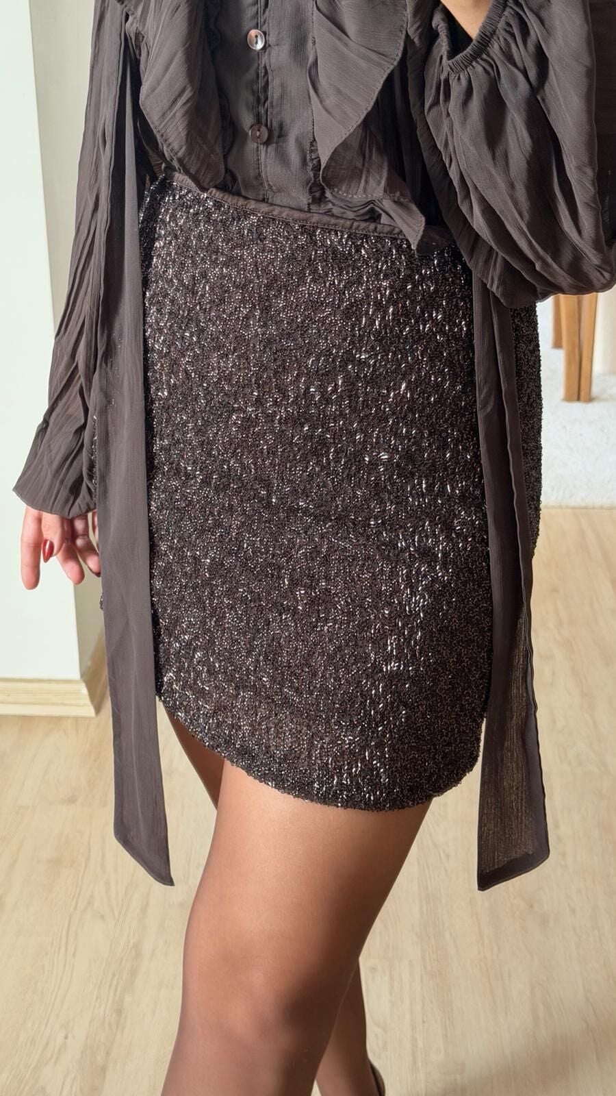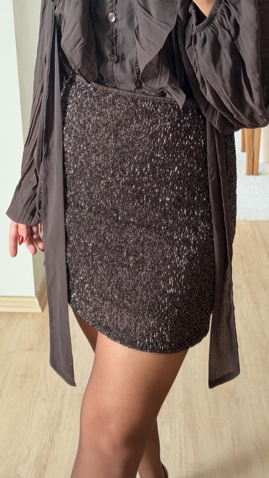 Mini Etek Taş İşlemeli Kahve