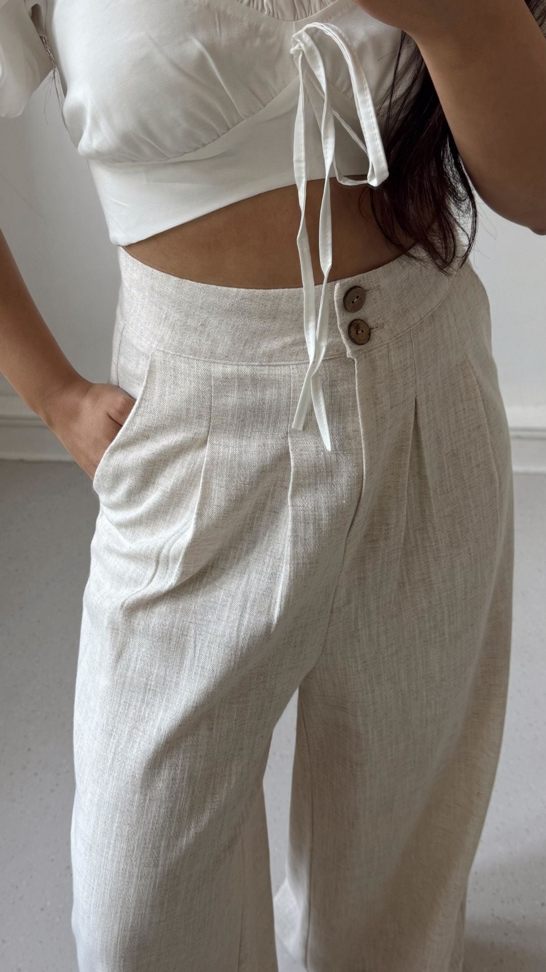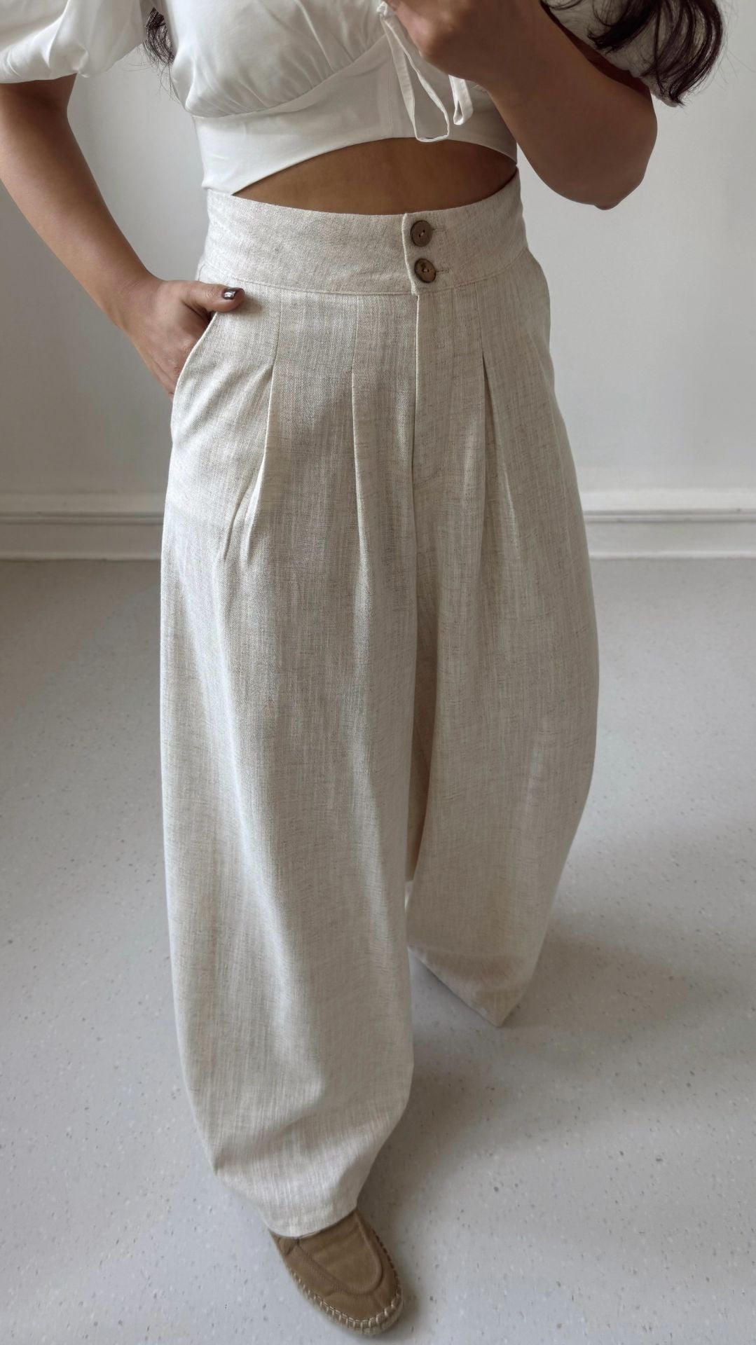 Natural Keten Etek Palazzo