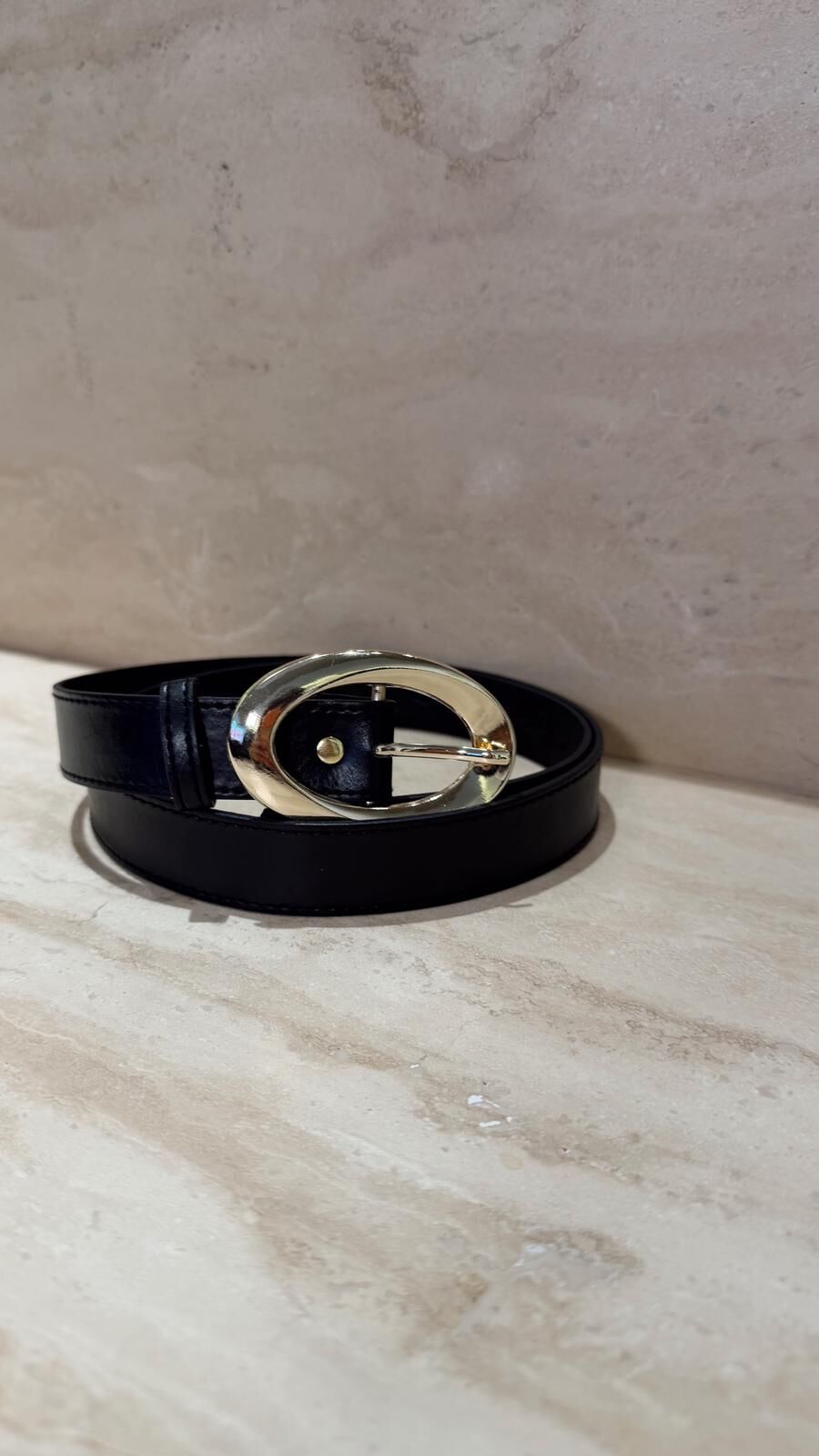 Oval Toka Deri Kemer Siyah