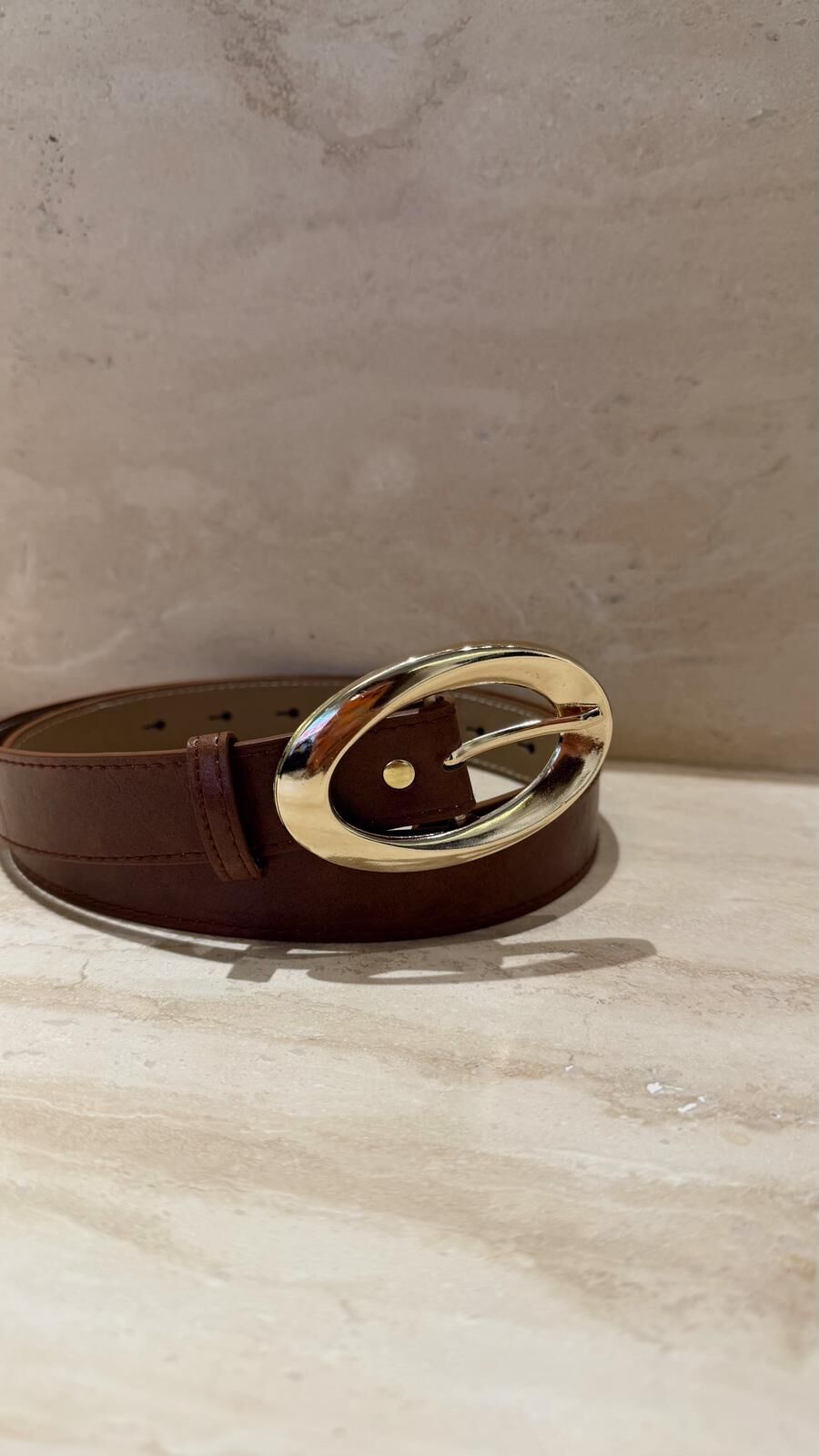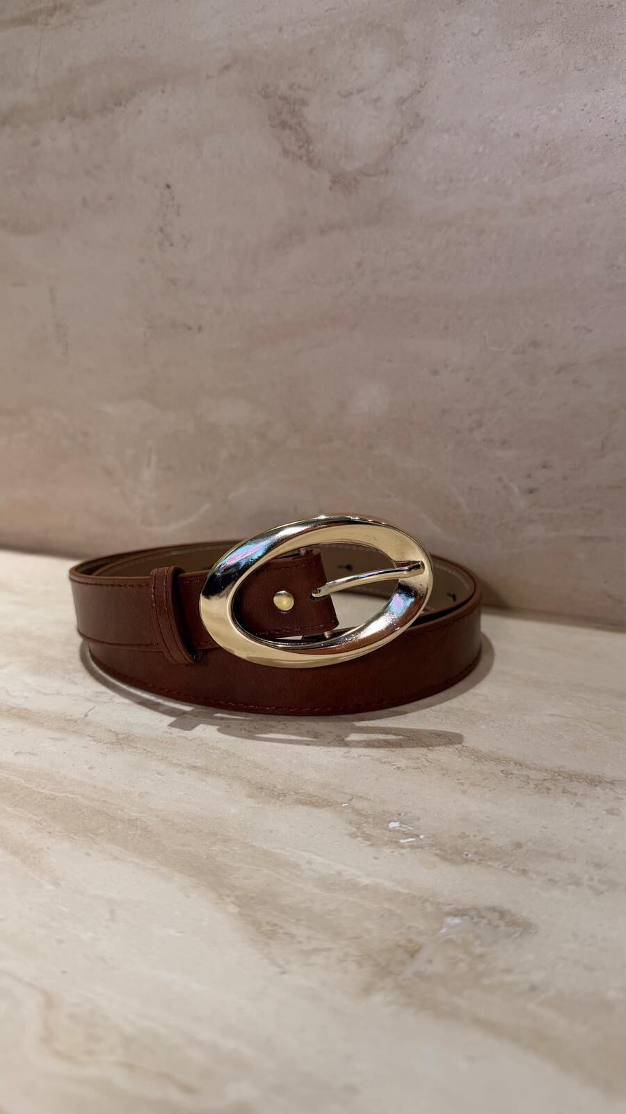 Oval Toka Deri Kemer Taba