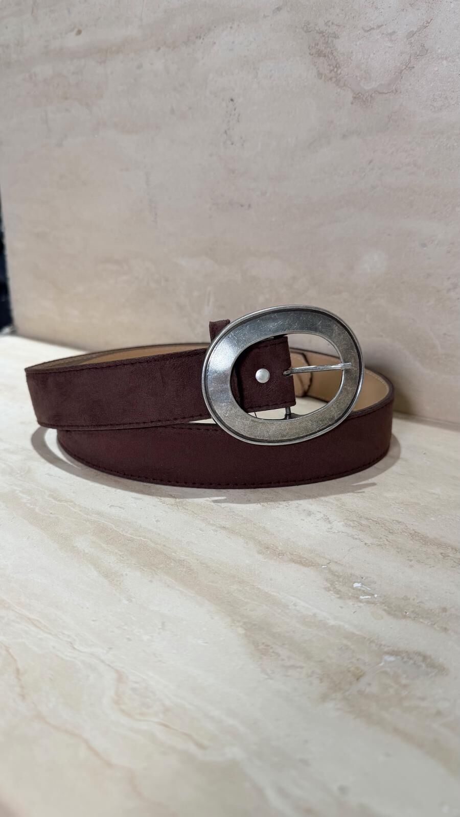 Oval Toka Süet Kemer Kahve