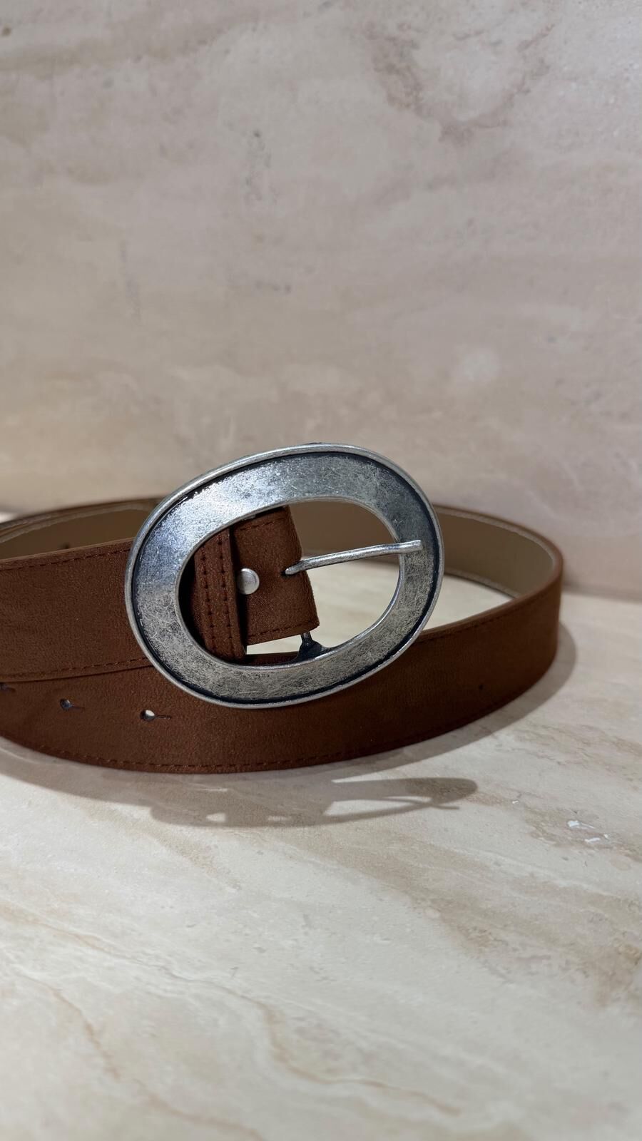 Oval Toka Süet Kemer Taba