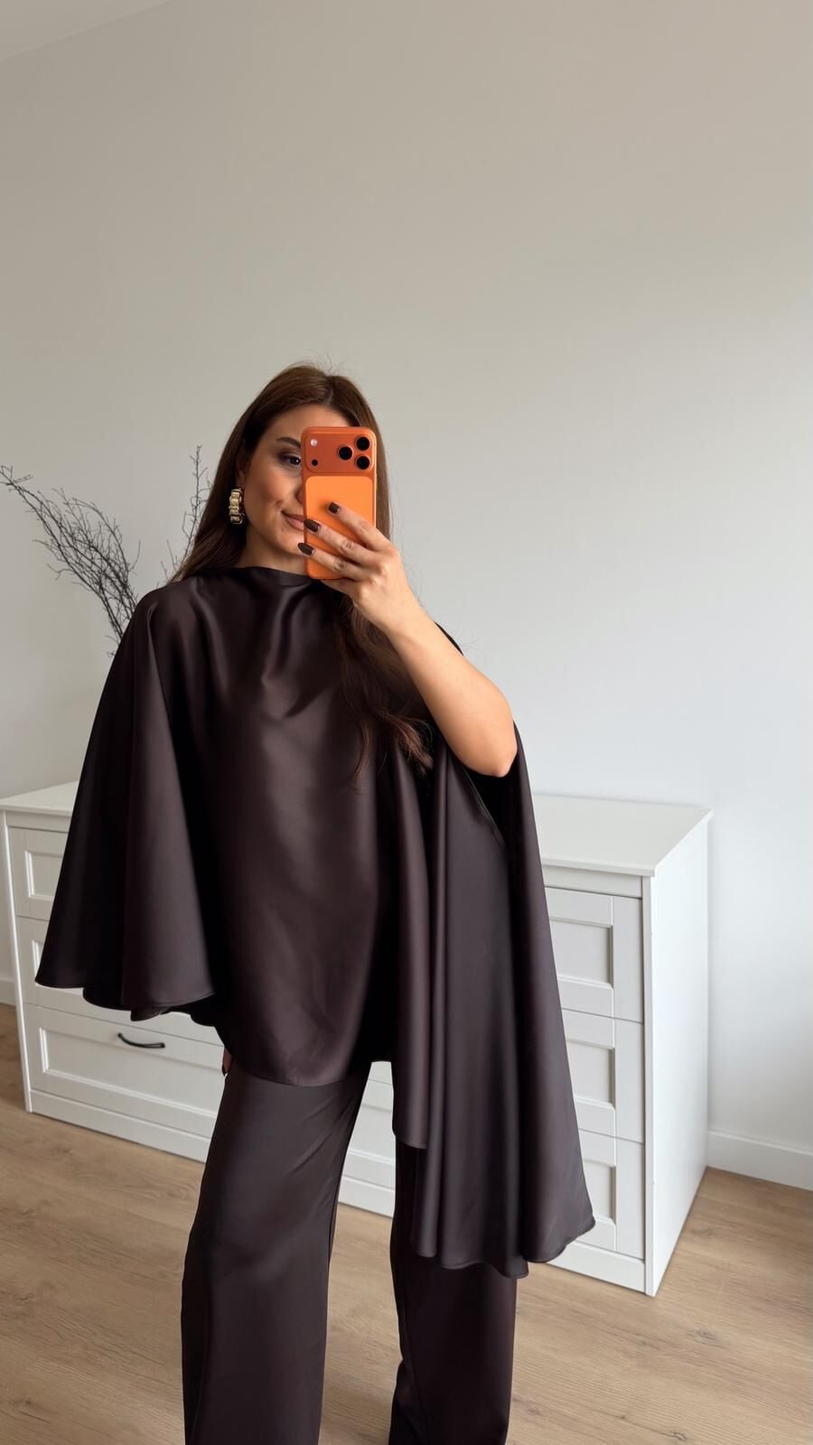 Pelerinli Bluz Pantolon Tkm Kahve