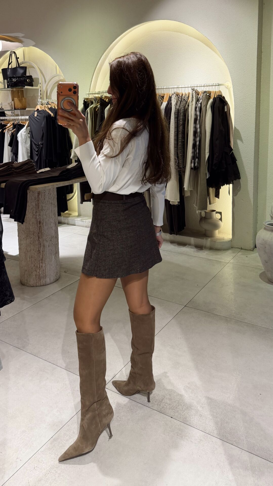 Pileli Ekose Mini Etek Kahve