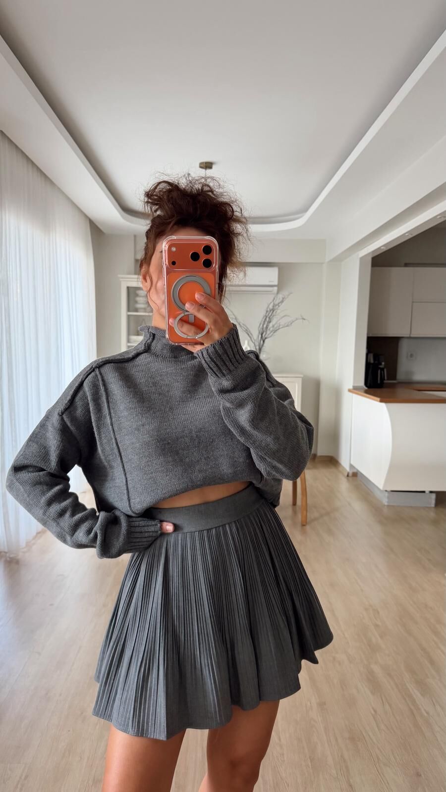 Piliseli Etek Koyu Gri