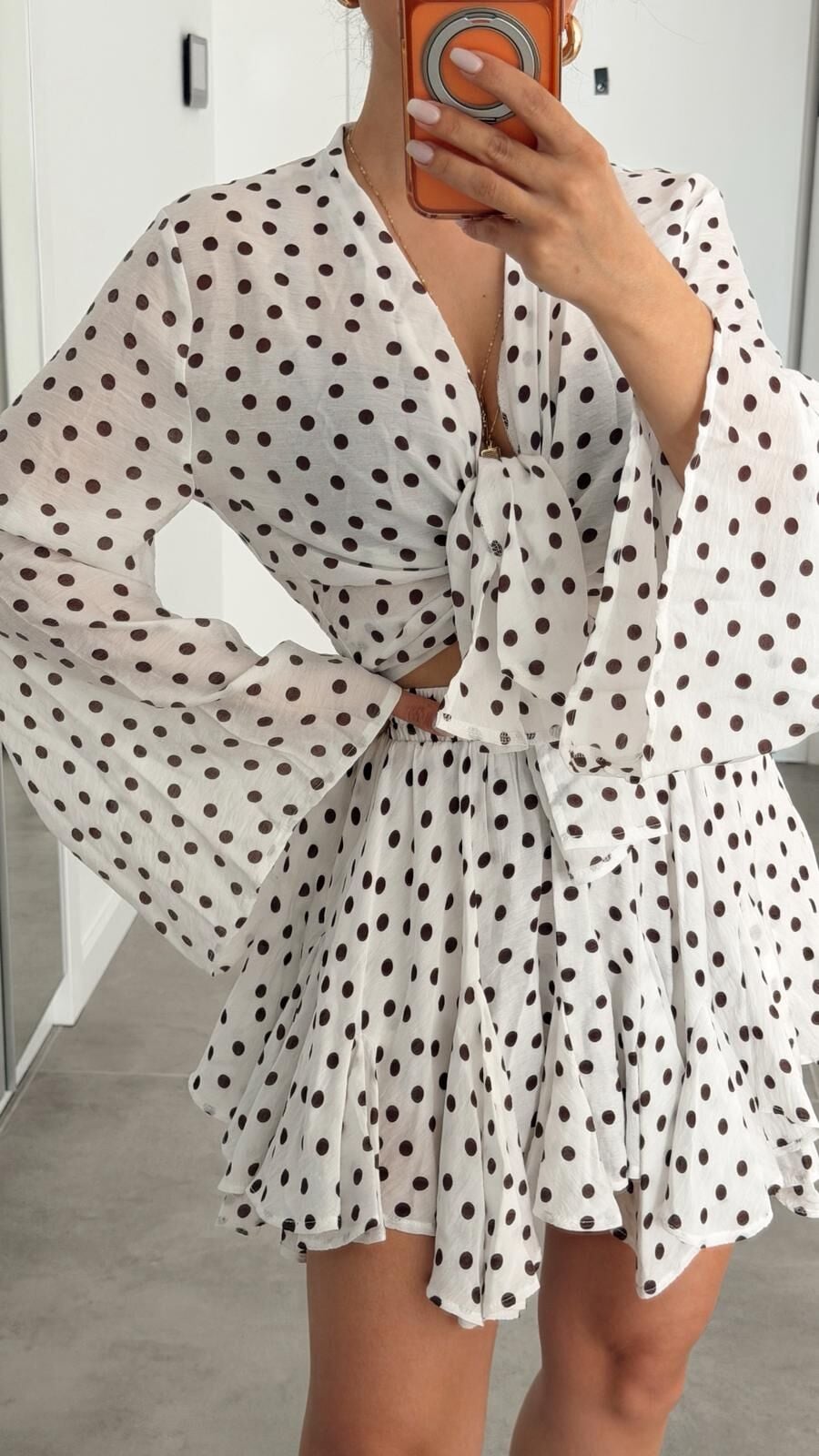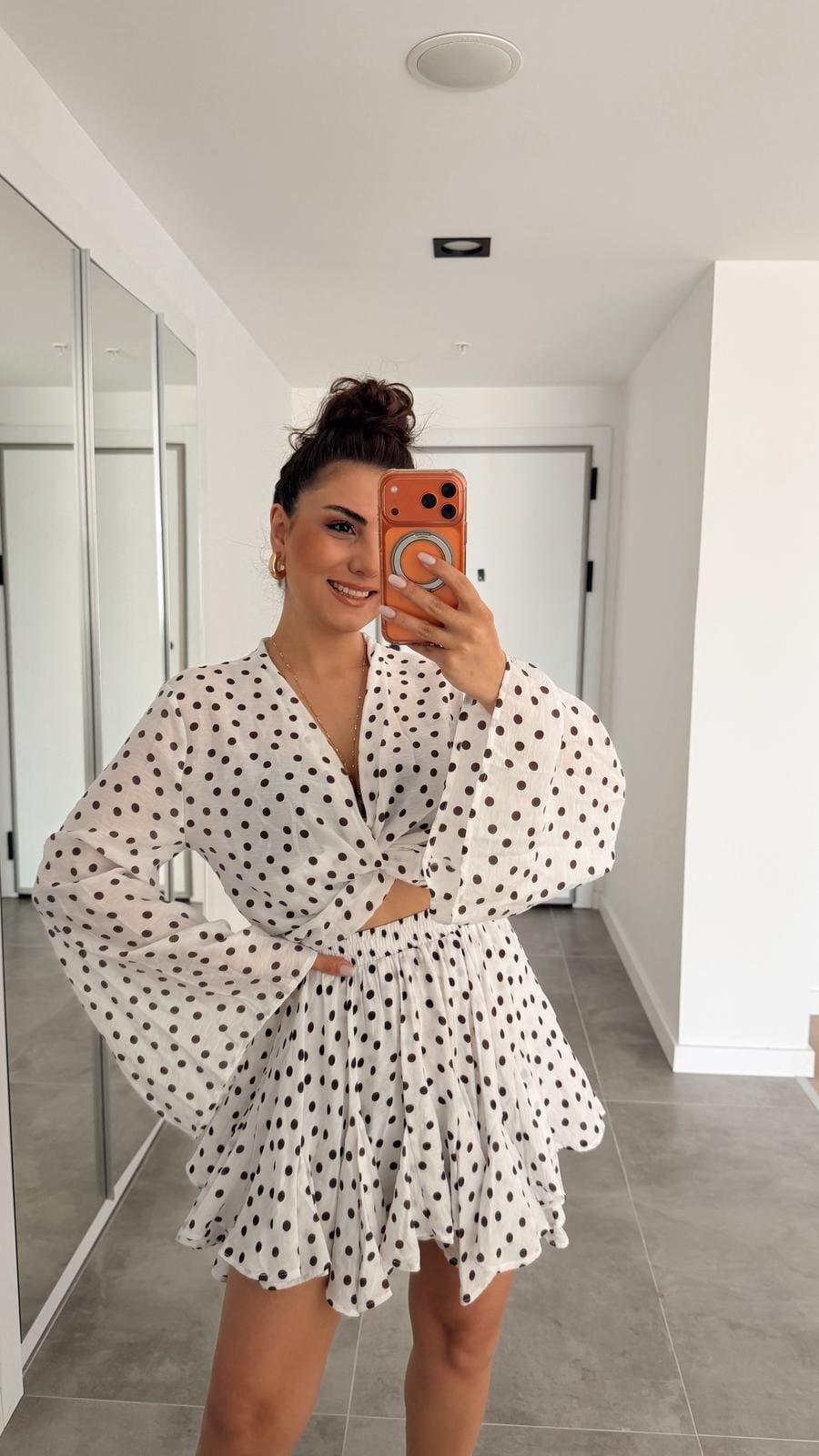 Puantiyeli Etek Bluz Takım Beyaz