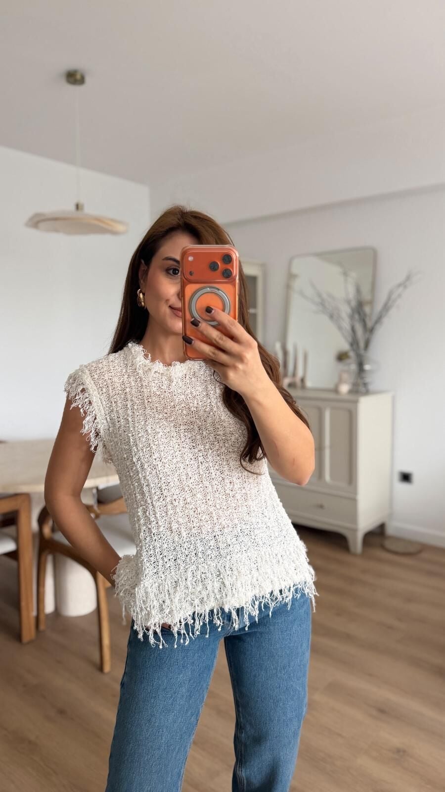 Püskül Detaylı Triko Süveter Ekru