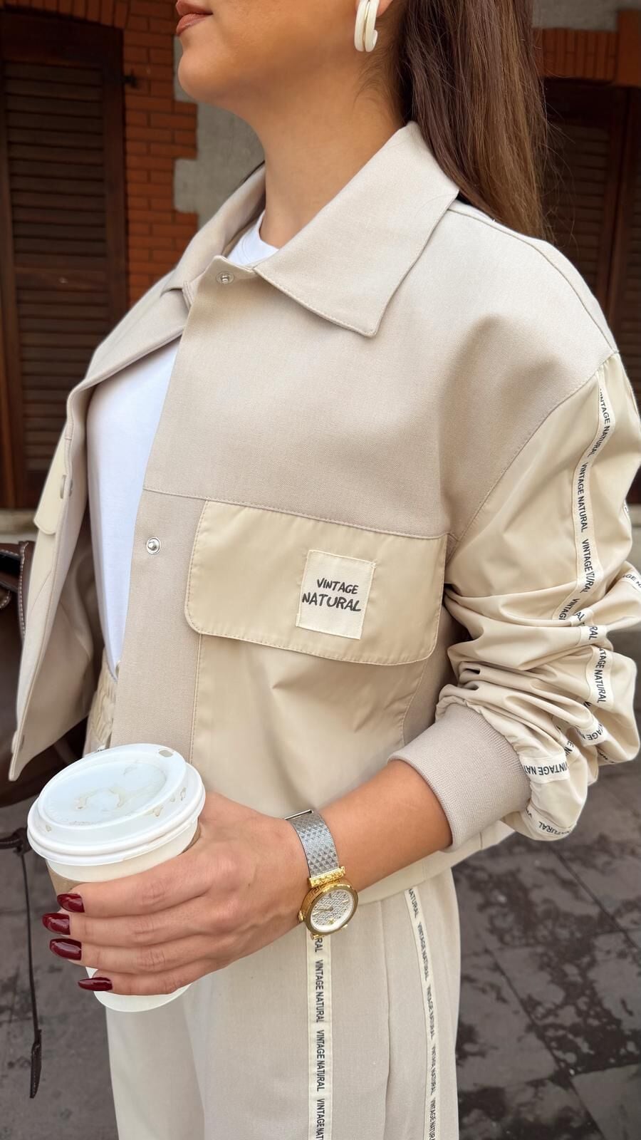 Şeritli Bej Ceket