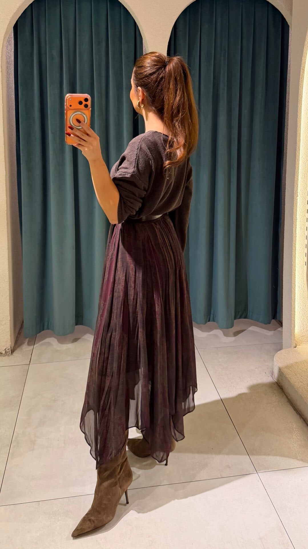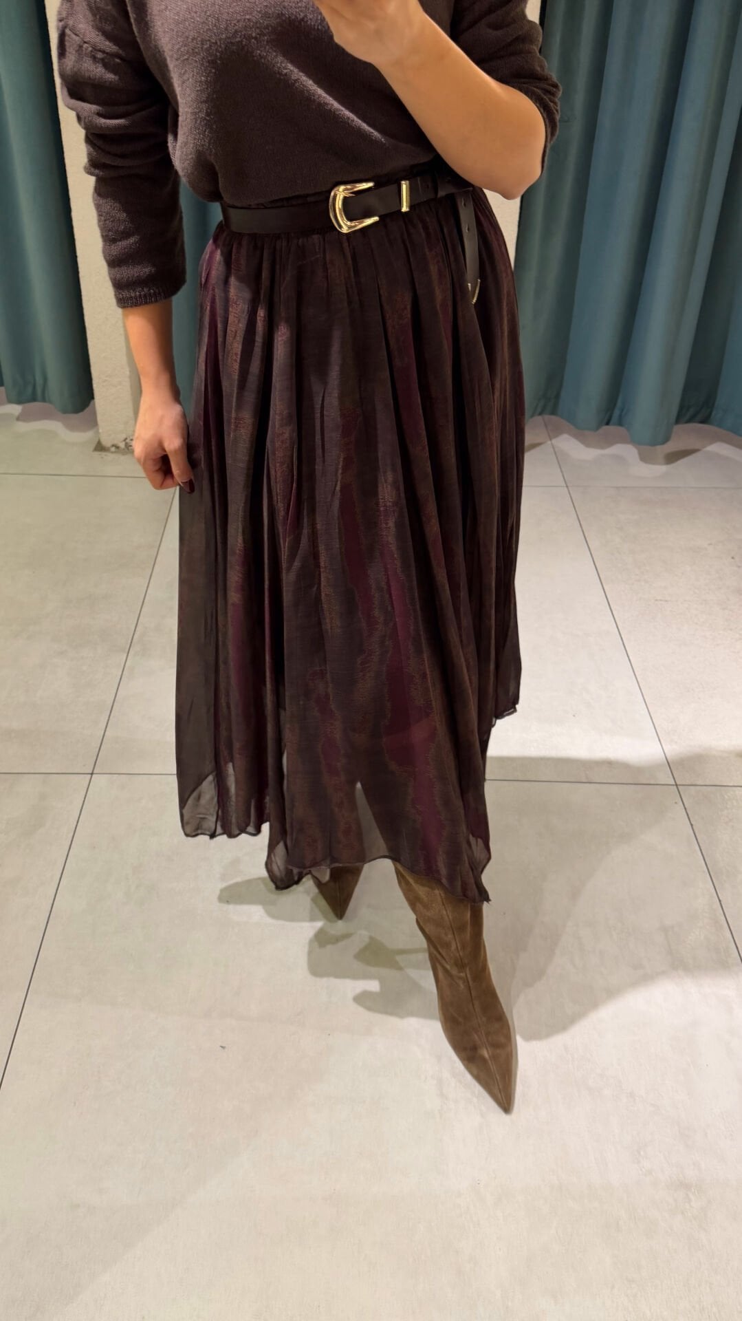 Şifon Desenli Etek Kahve
