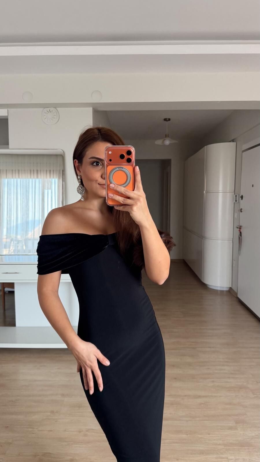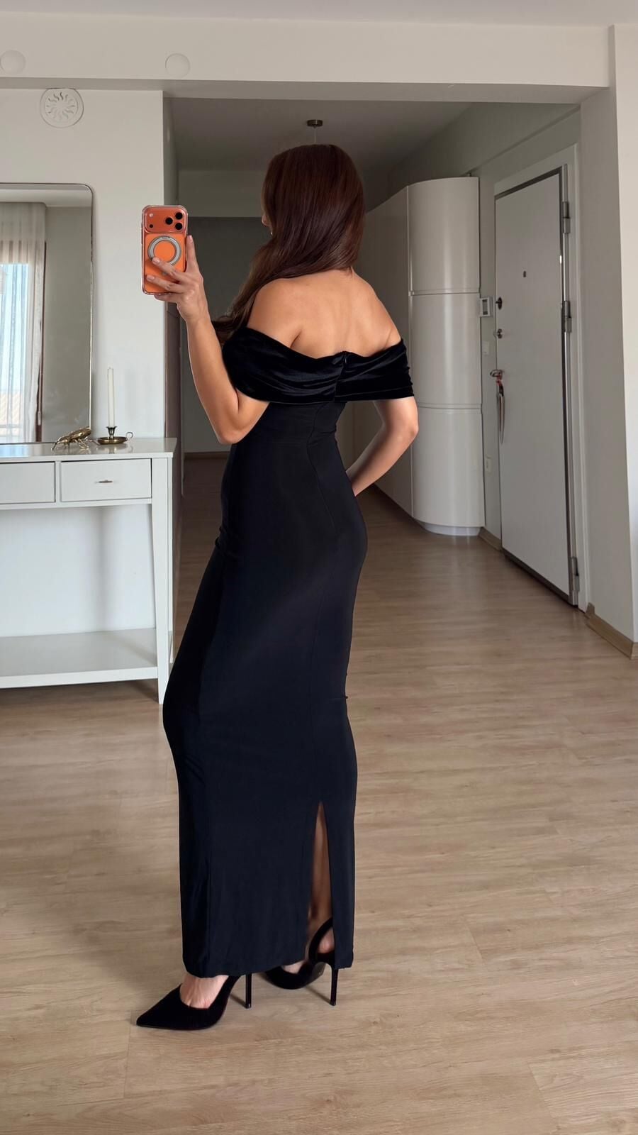 Siyah Kadife Detay Elbise