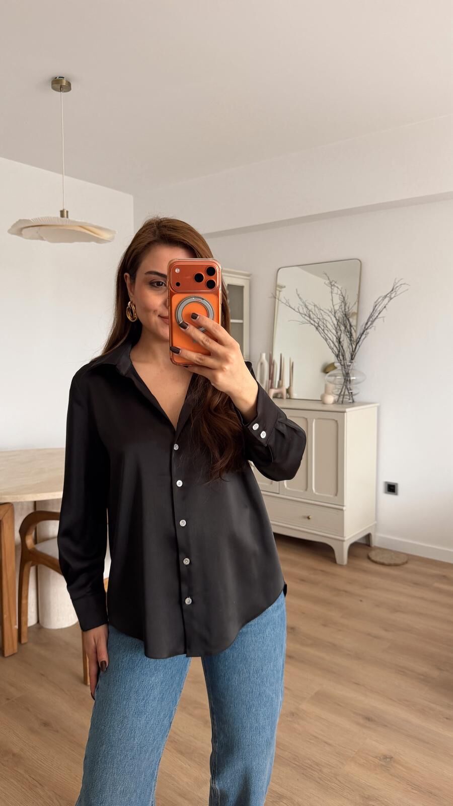 Siyah Saten Gömlek