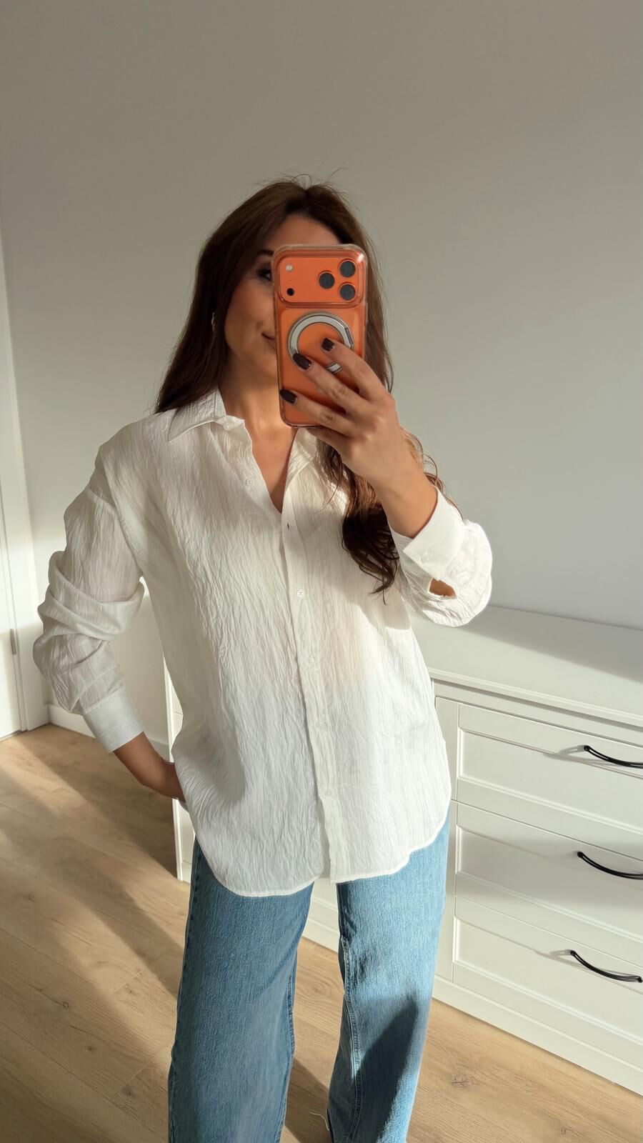Soft Linen Dokulu Ekru Gömlek