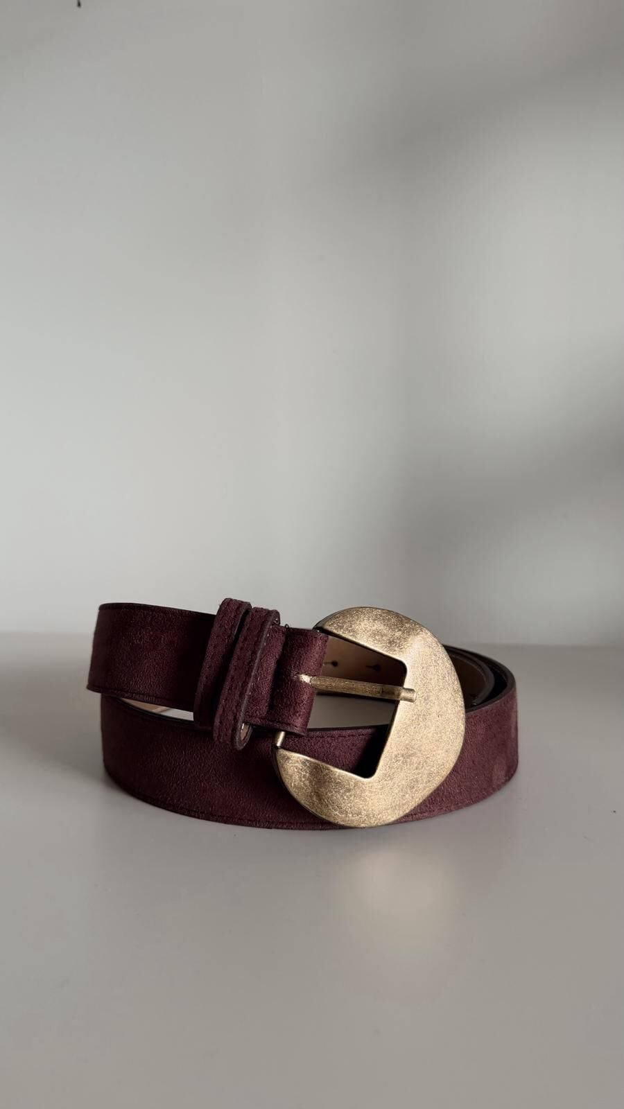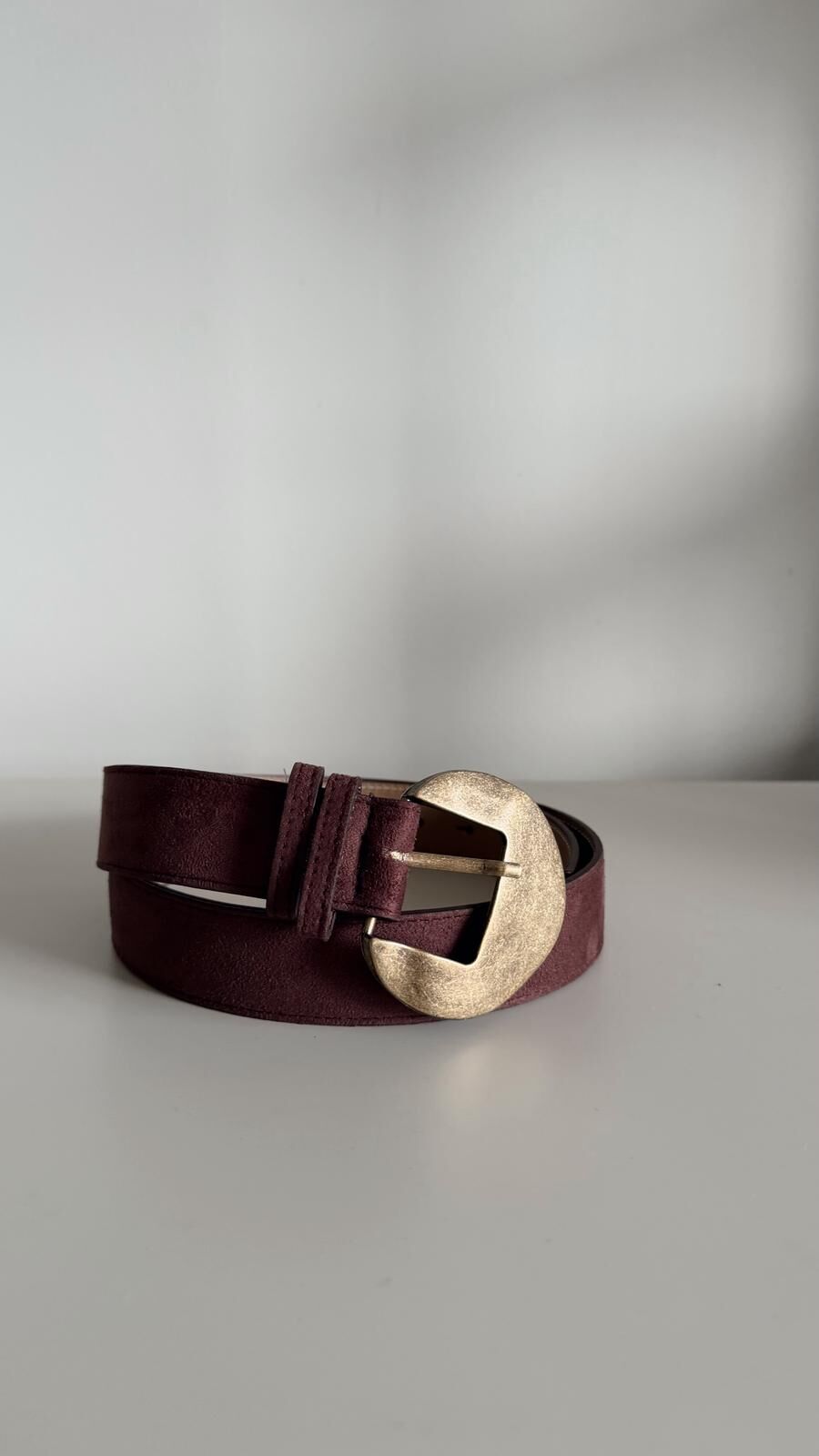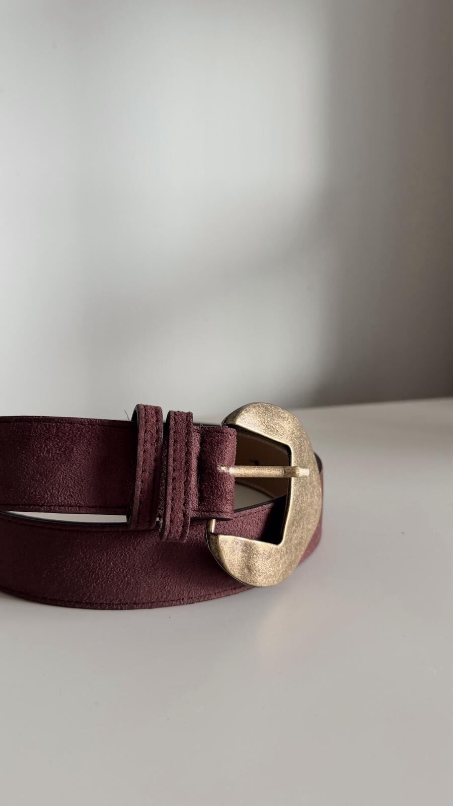 Süet Bronz Toka Kemer Kahve