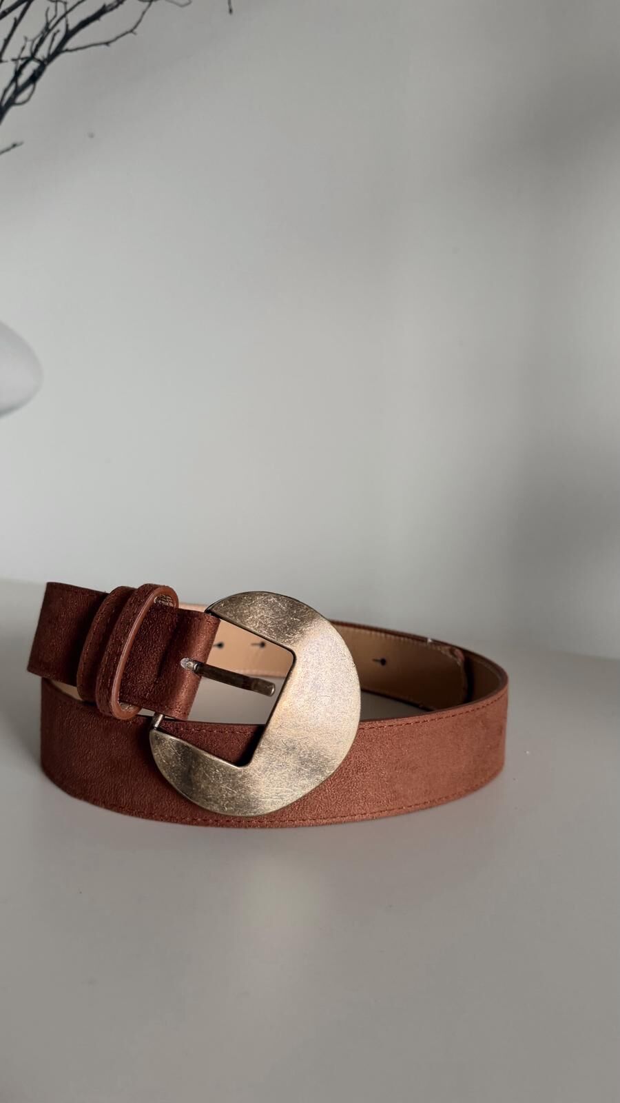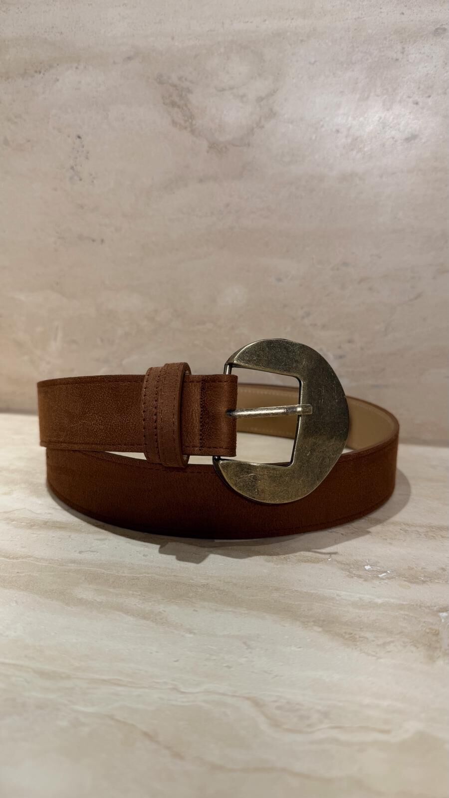Süet Bronz Toka Kemer Taba