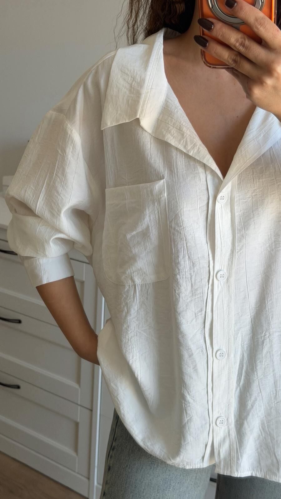 Tek Cep Beyaz Gömlek