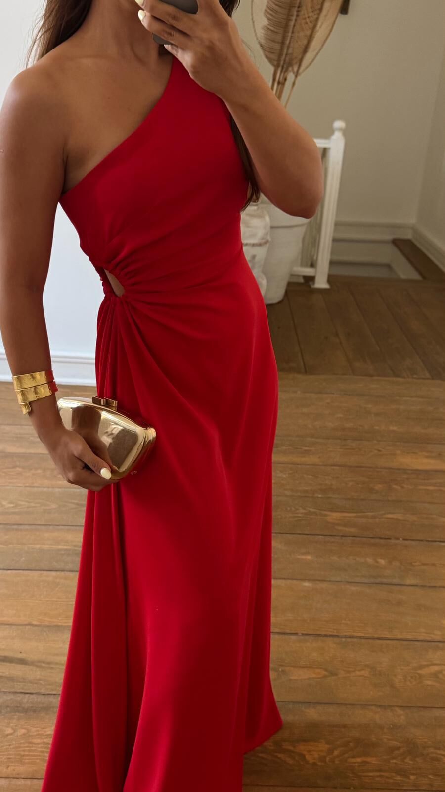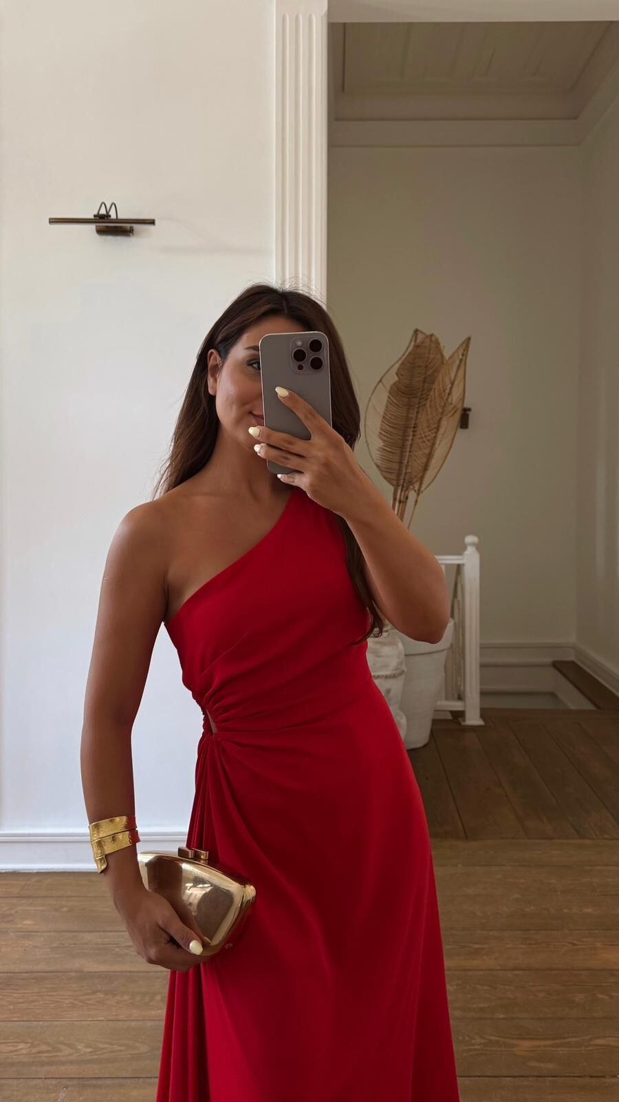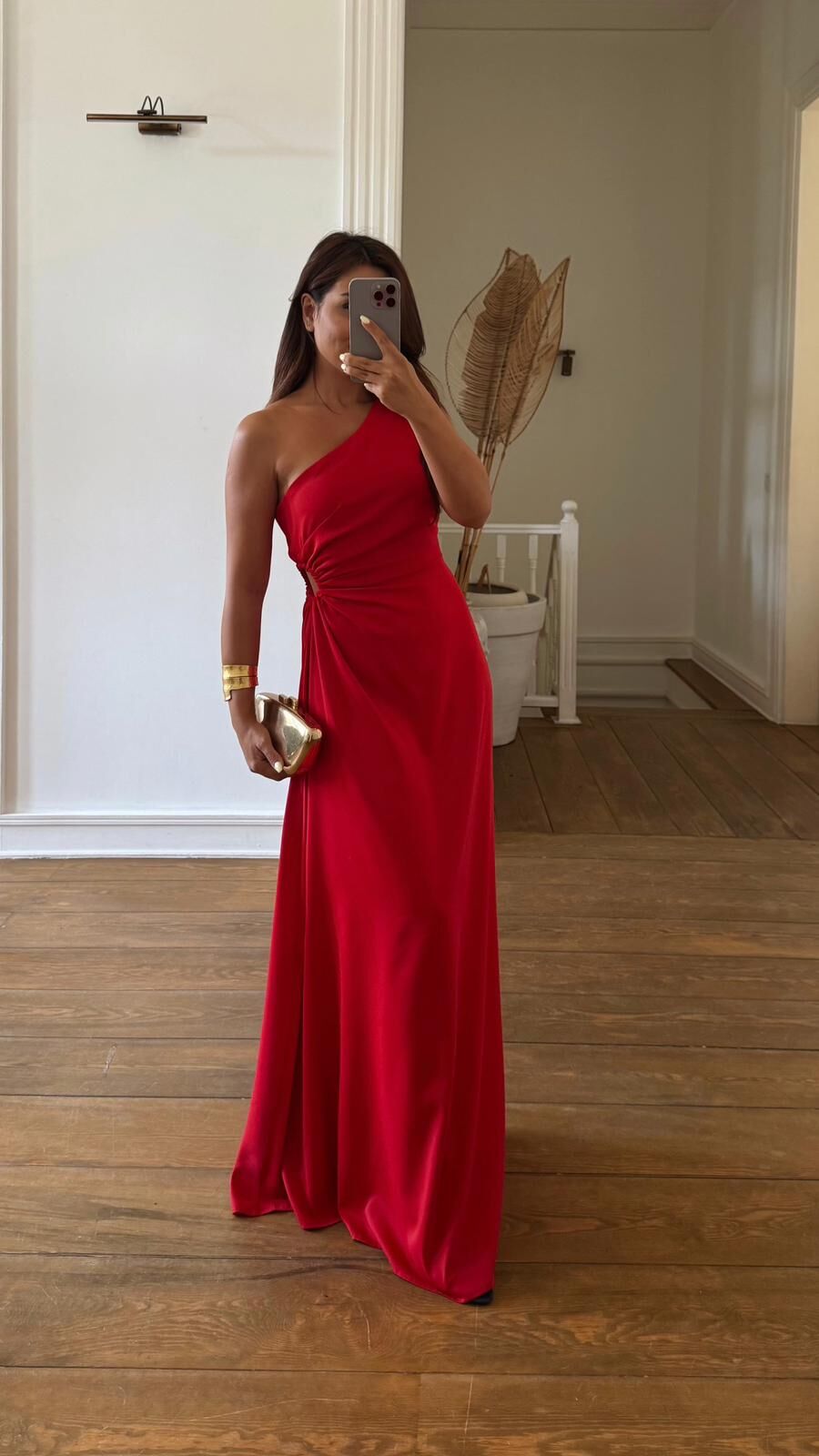 Tek Omuz Kırmızı Saten Elbise