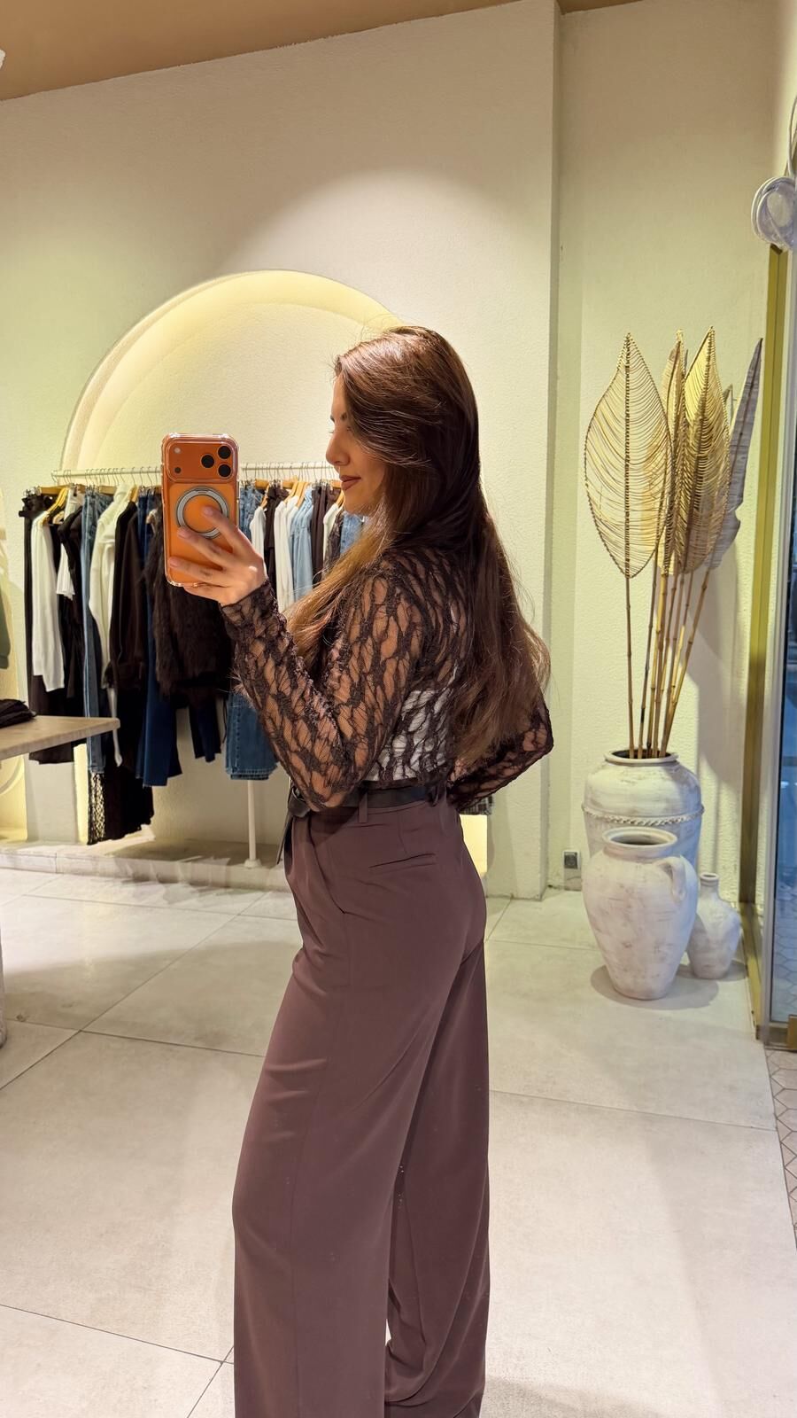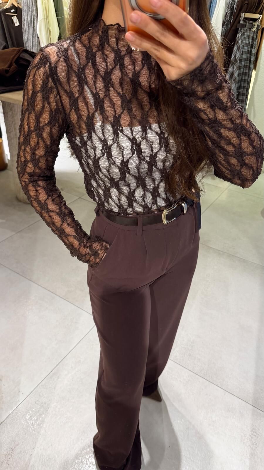 Transparan Dantel Bluz Kahve