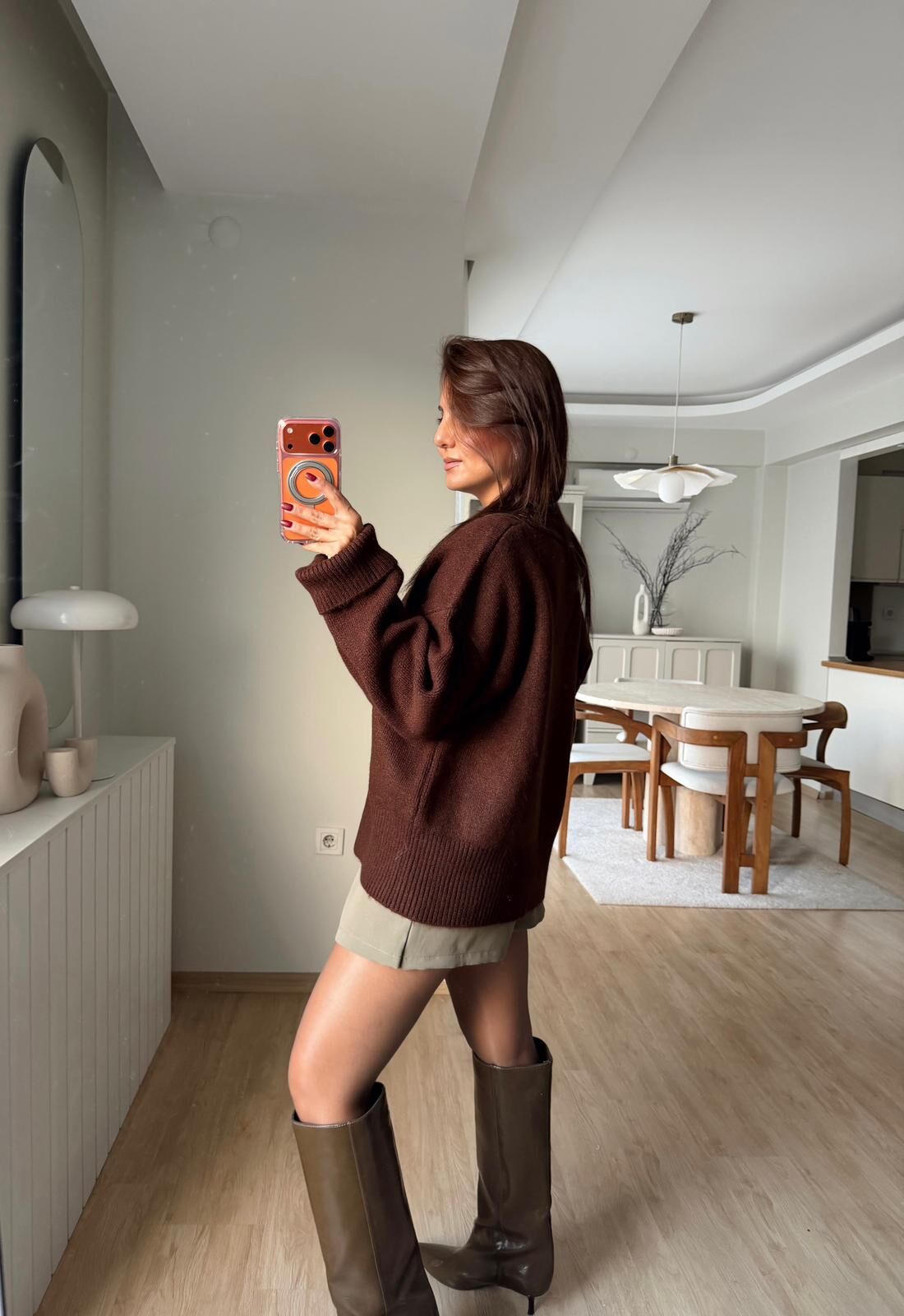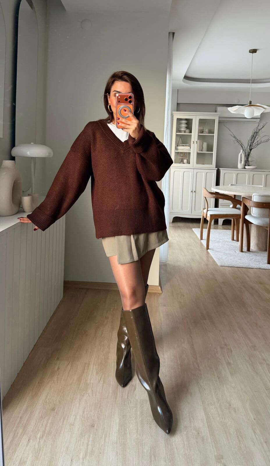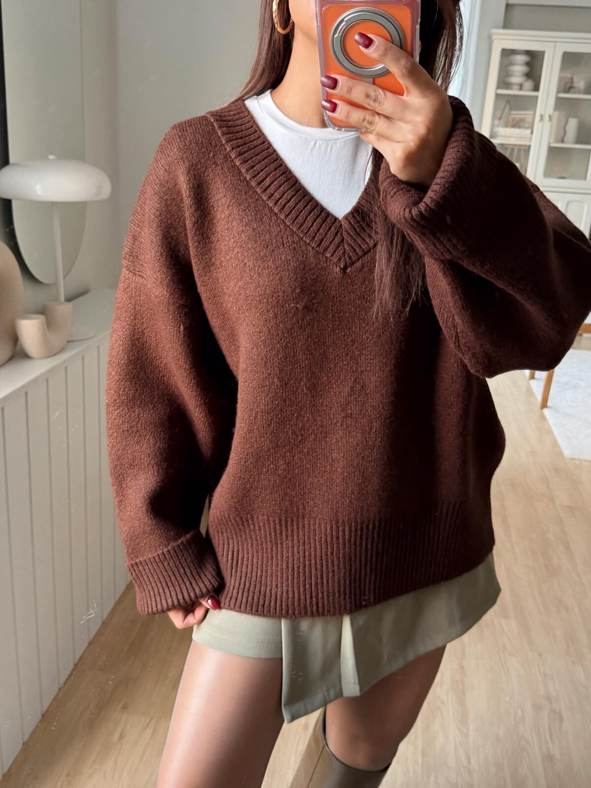 V Yaka Triko Kazak Kahve