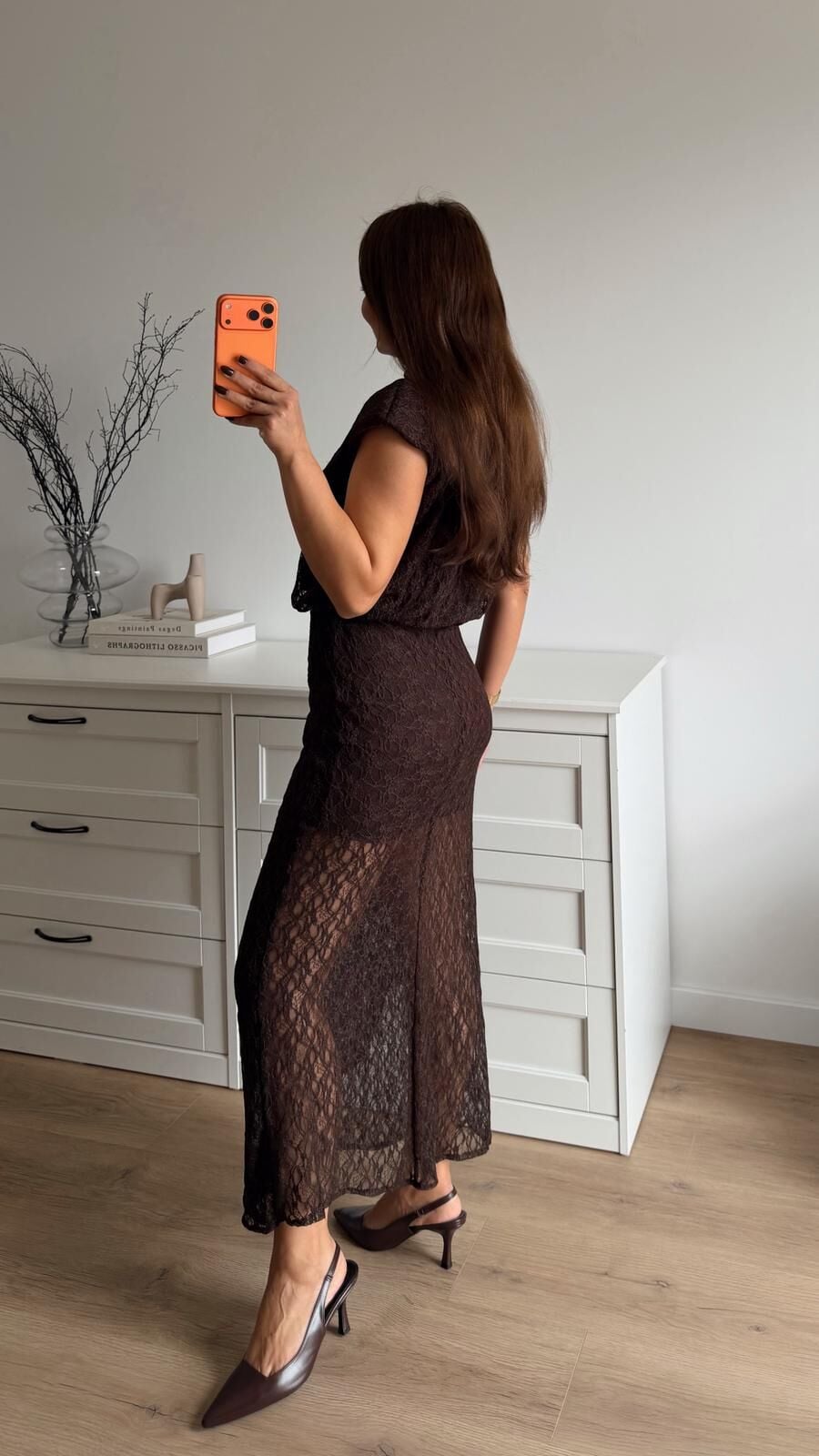 Vatkalı Dantel Elbise Kahve