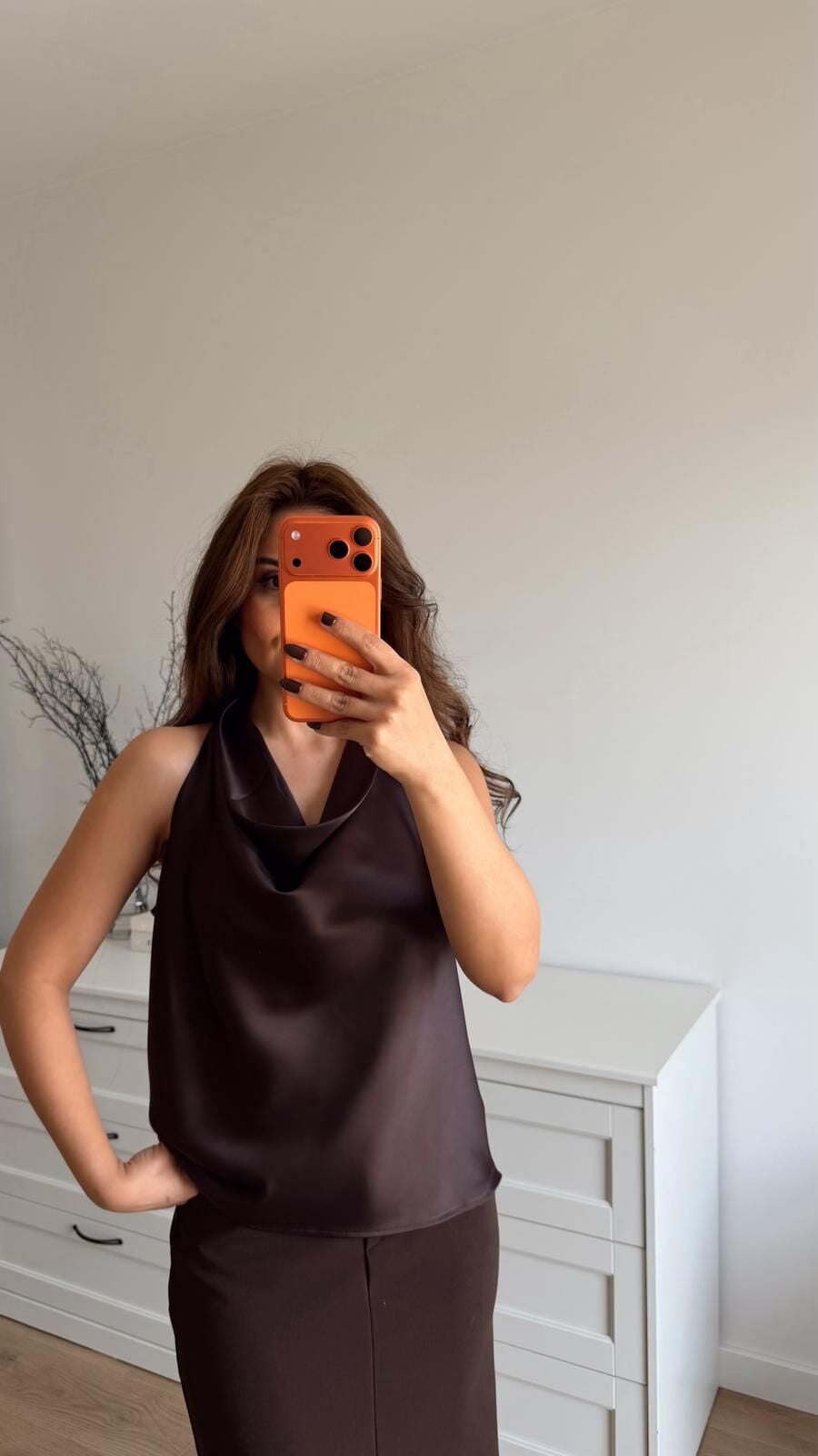 Yaka Dökümlü Bluz Kahve
