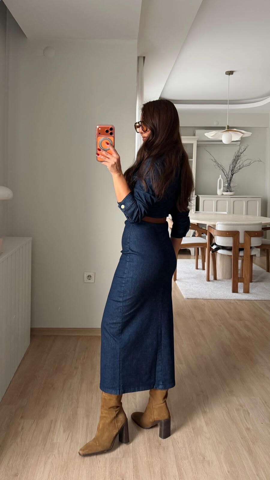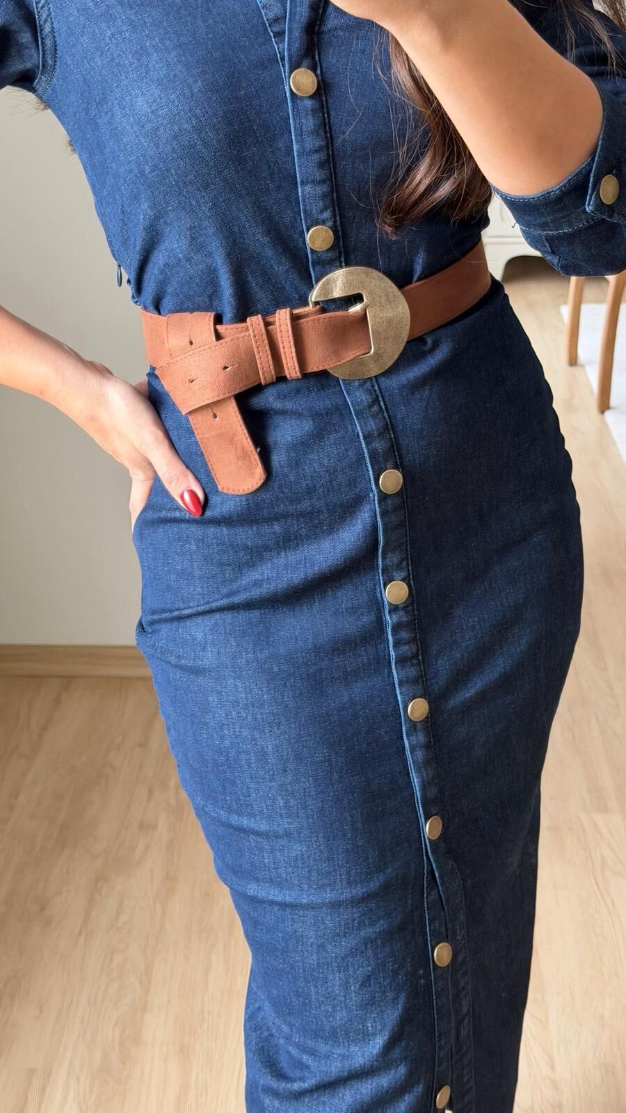 Yan Drape Denim Elbise Laci