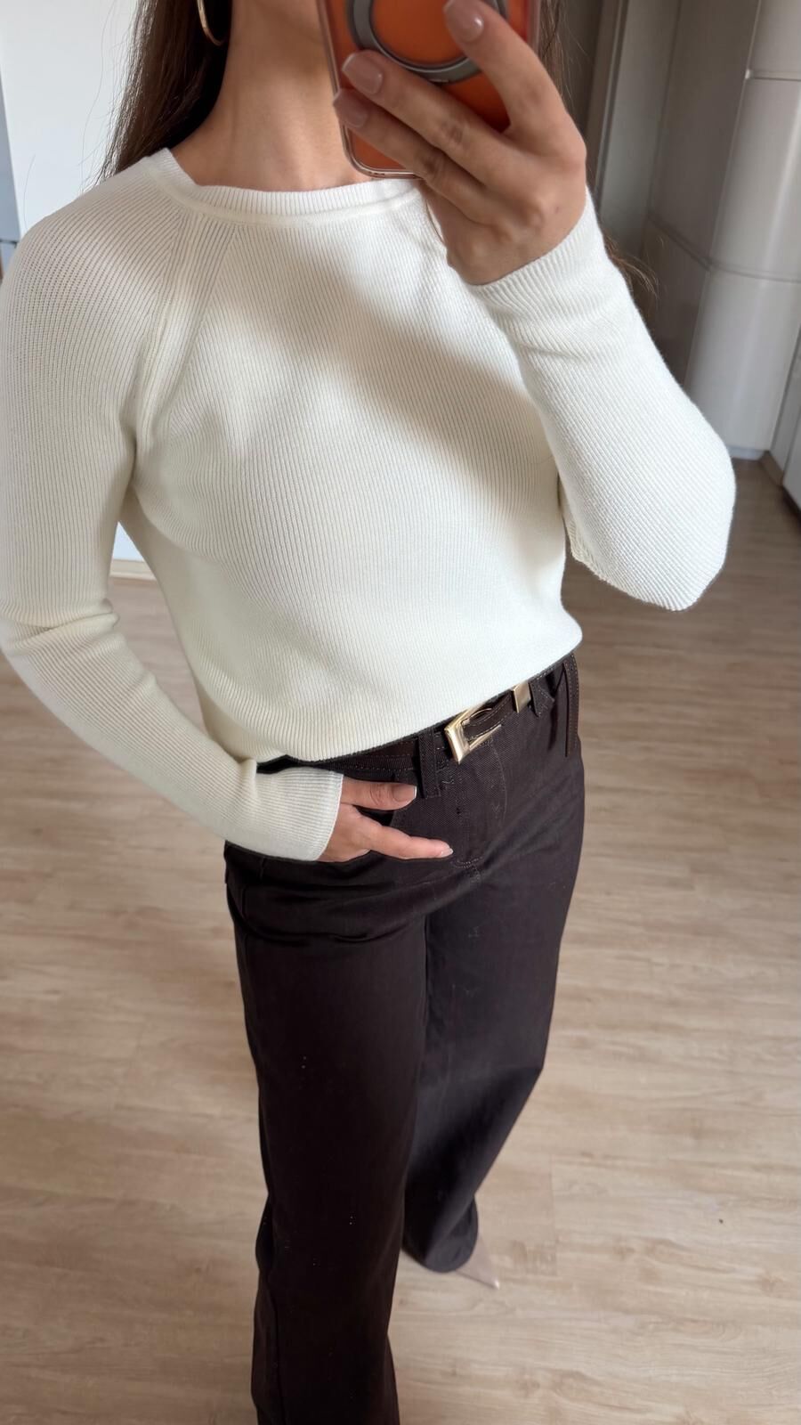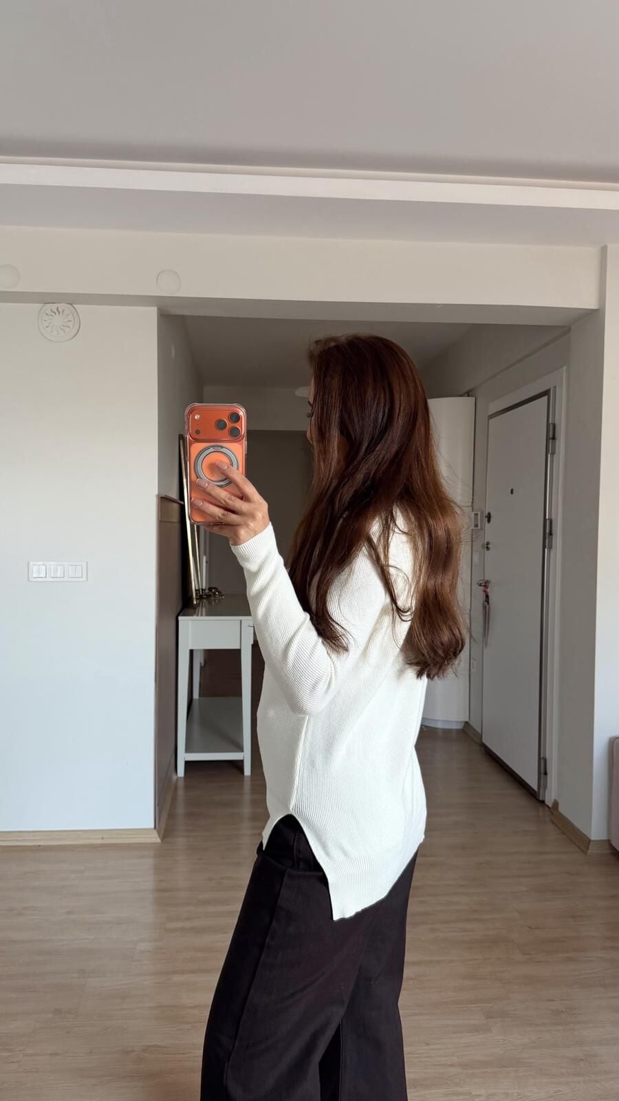 Yırtmaçlı Triko Kazak Ekru
