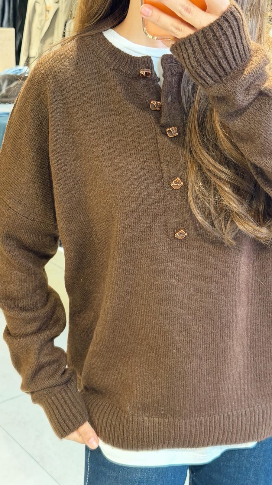 ZR Düğmeli Kahve Kazak