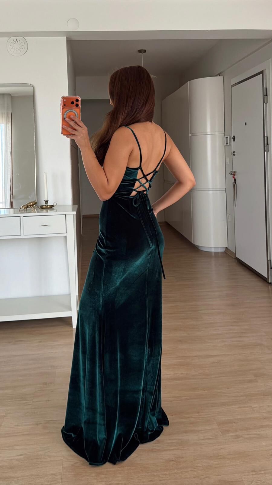 Zümrüt Yırtmaçlı Kadife Elbise